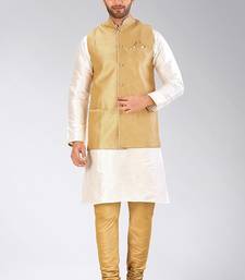 Biscuit dupon art silk kurta, jacket with matching churidar