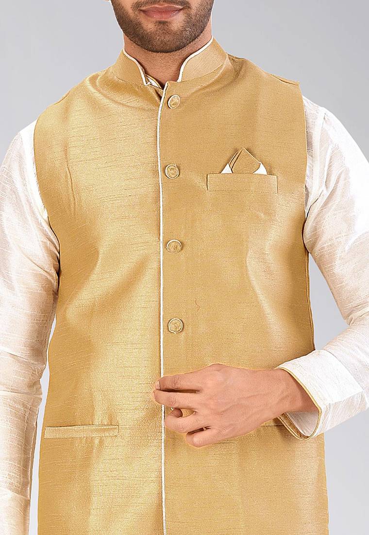 Product Description | Dipion Art Silk Jacket Kurta Payjama Set With Pipein Contrast Work |