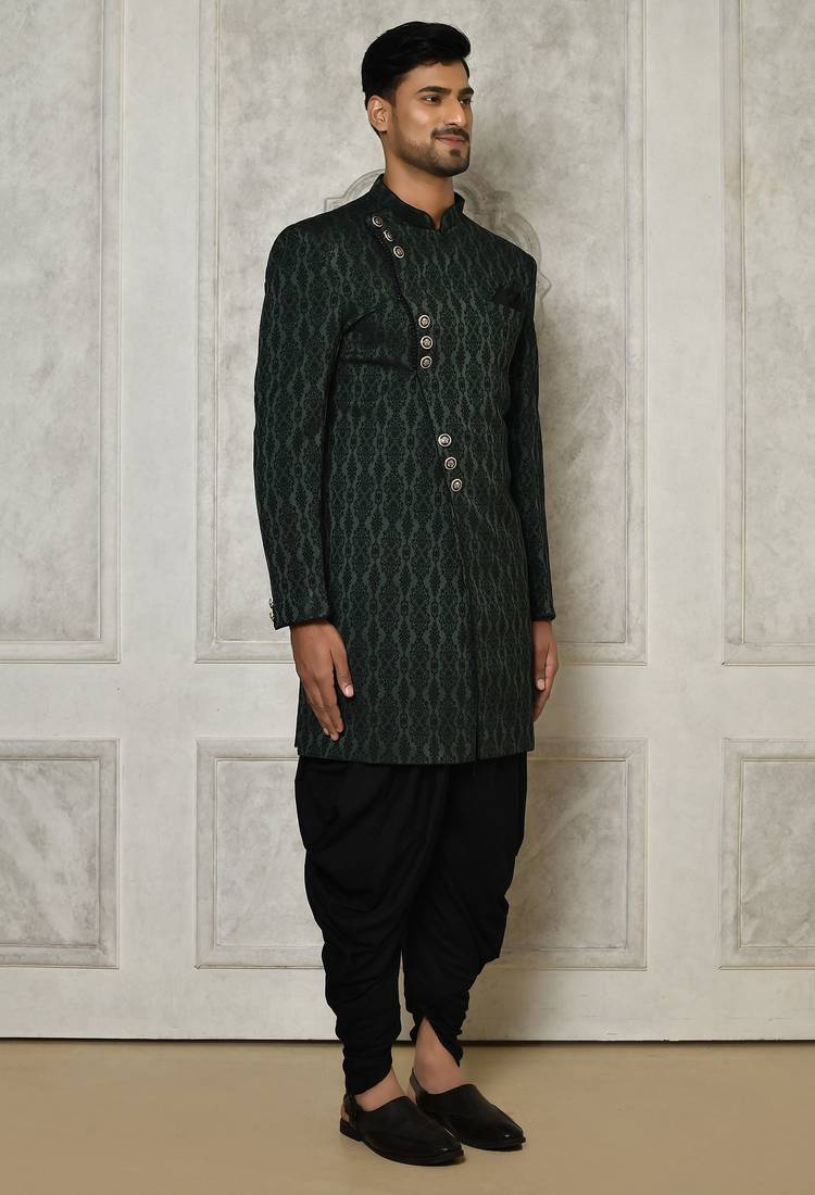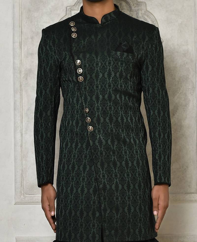 | Product Name | Bottle Green Anghrakha Pattern Work Indo Western | |