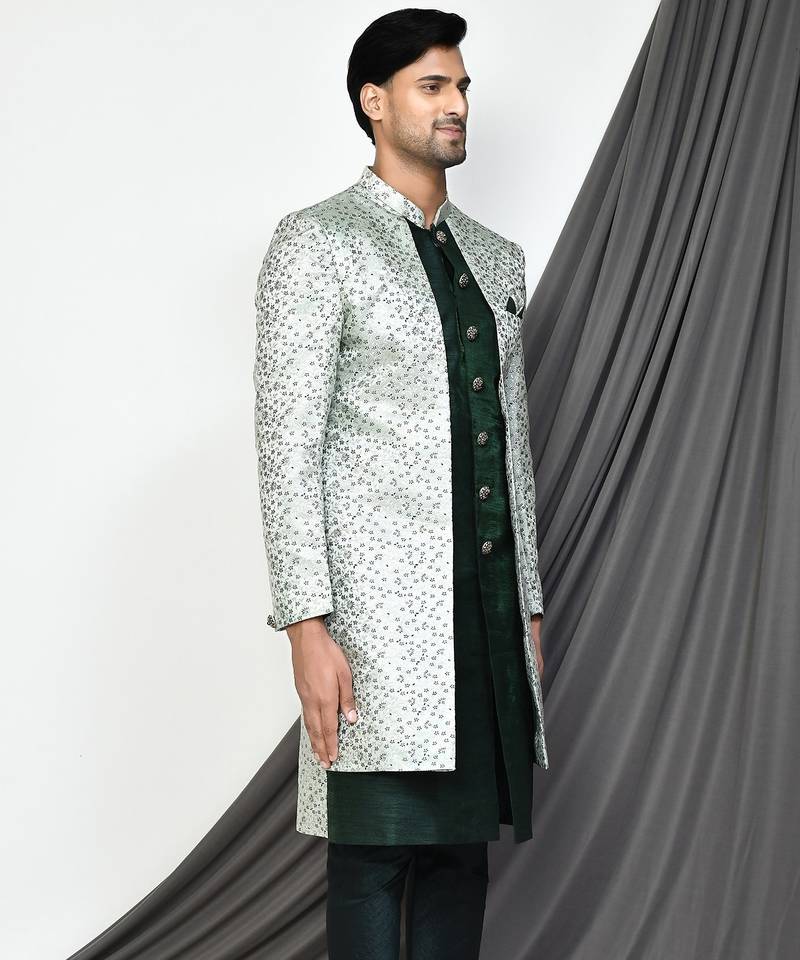| Product Name | Bottle Green Front Open Pattern Indo Western | |