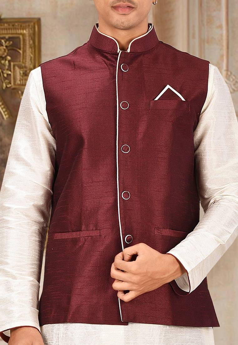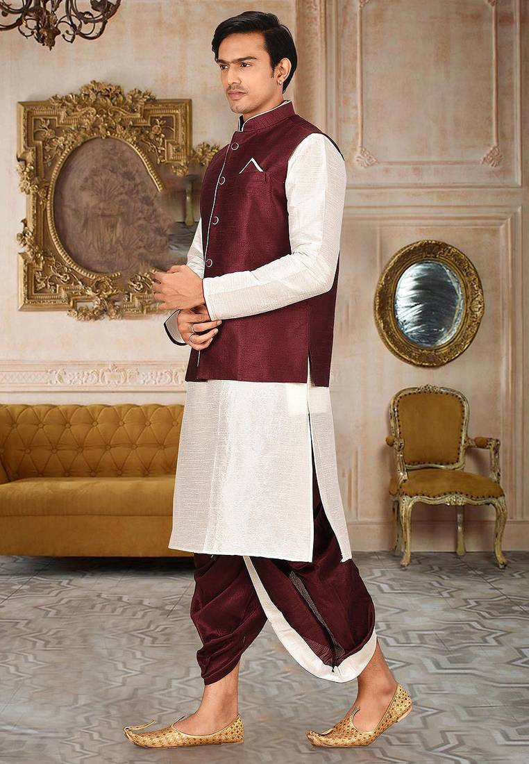 Product Name | Cream Dupon Art Silk Kurta, Jacket With Matching Dhoti | |