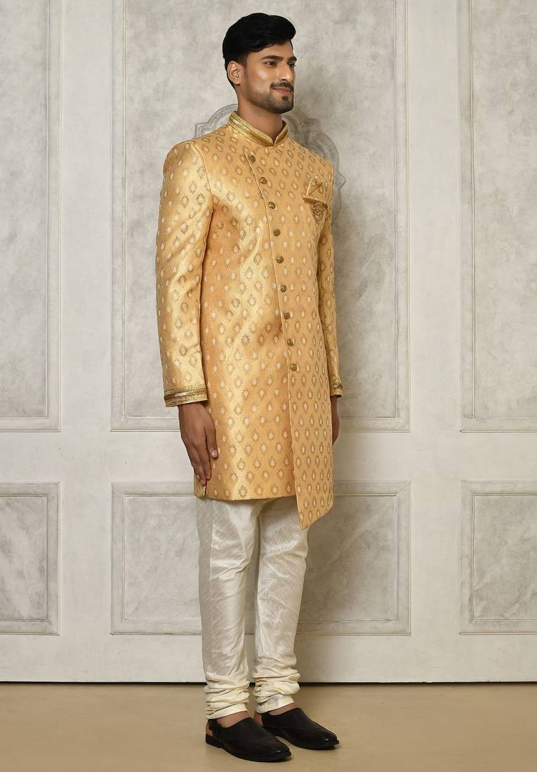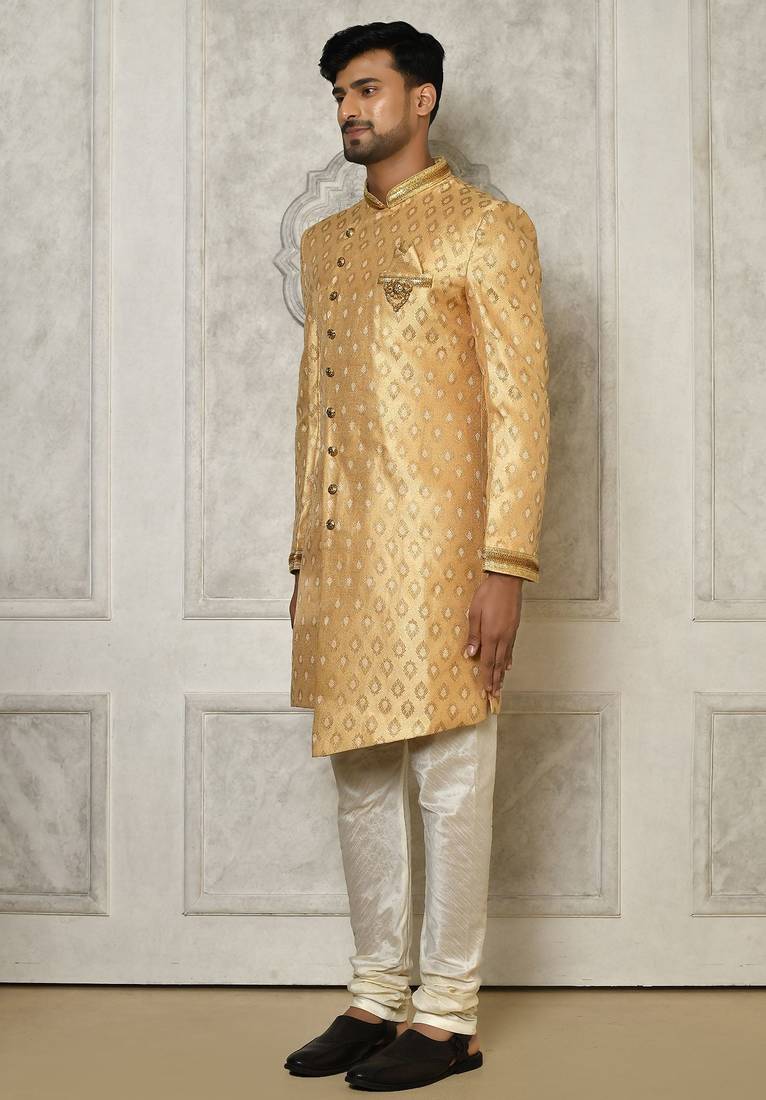 | Product Name | Fawn Anghrakha Pattern Work With Hand Work On Collar And Pocket Indo Western | |