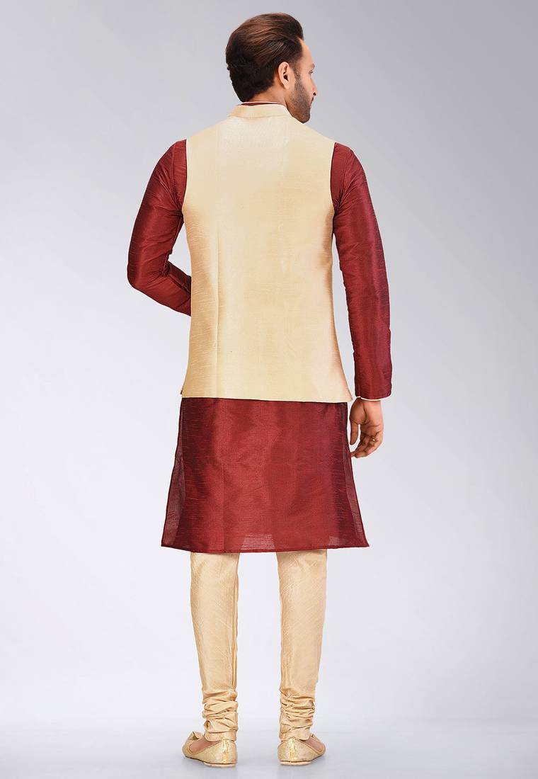 Product Description | Dipion Art Silk Jacket Kurta Payjama Set With Pipein Contrast Work |