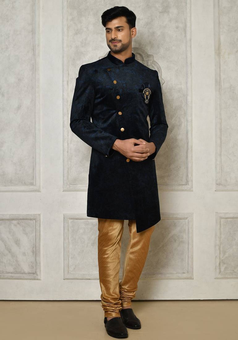 Product Name Navy Blue Anghrakha Pattern Work Indo Western