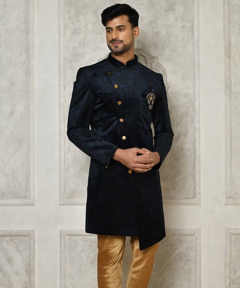 | Product Name | Navy Blue Anghrakha Pattern Work Indo Western | |