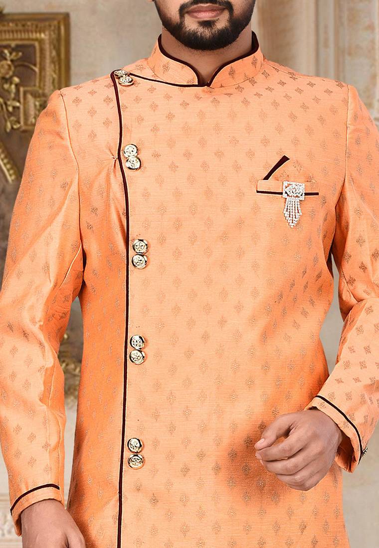 | Product Name | Orange Anghrakha Pattern Work With Mahroon Pipe In Indo Western | |