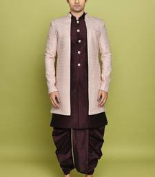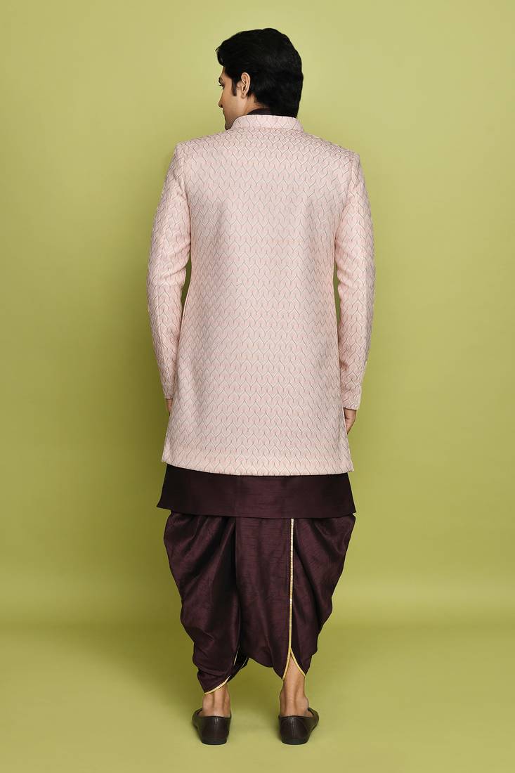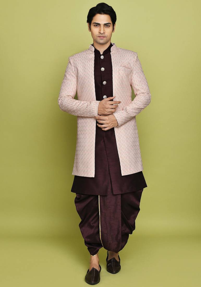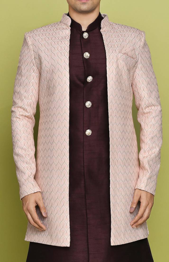 Pink front open pattern design with detached inside sleeveless jacket indo western