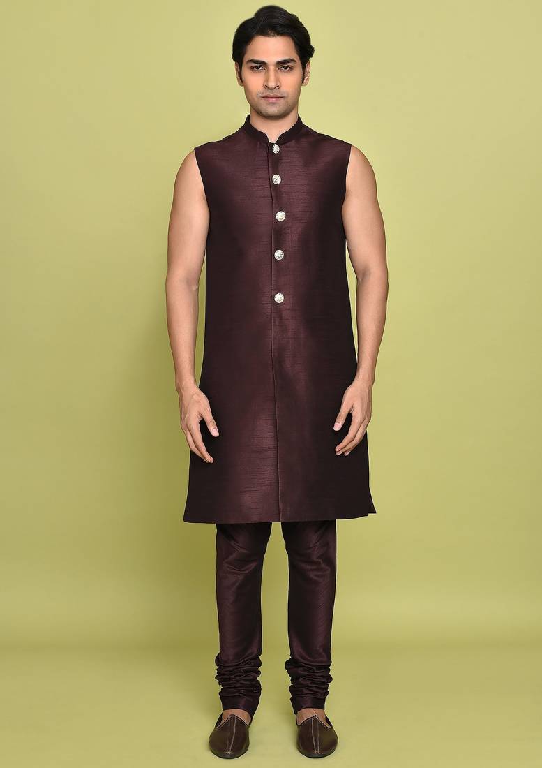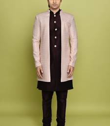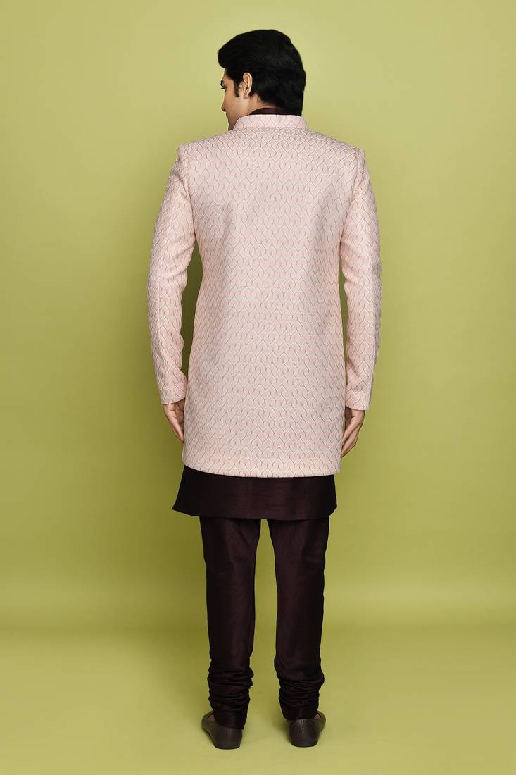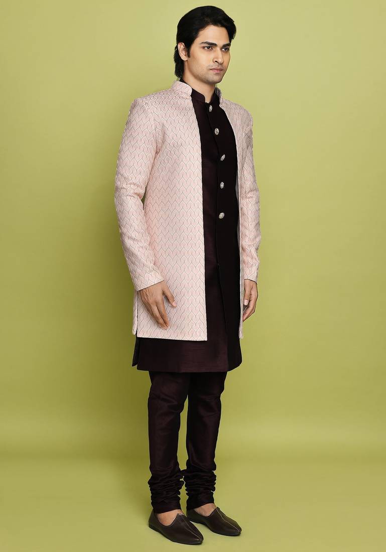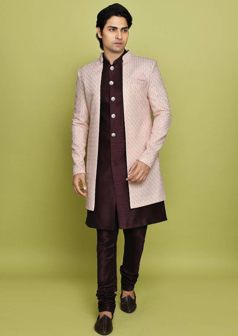 Pink front open pattern design with detached inside sleeveless jacket indo western