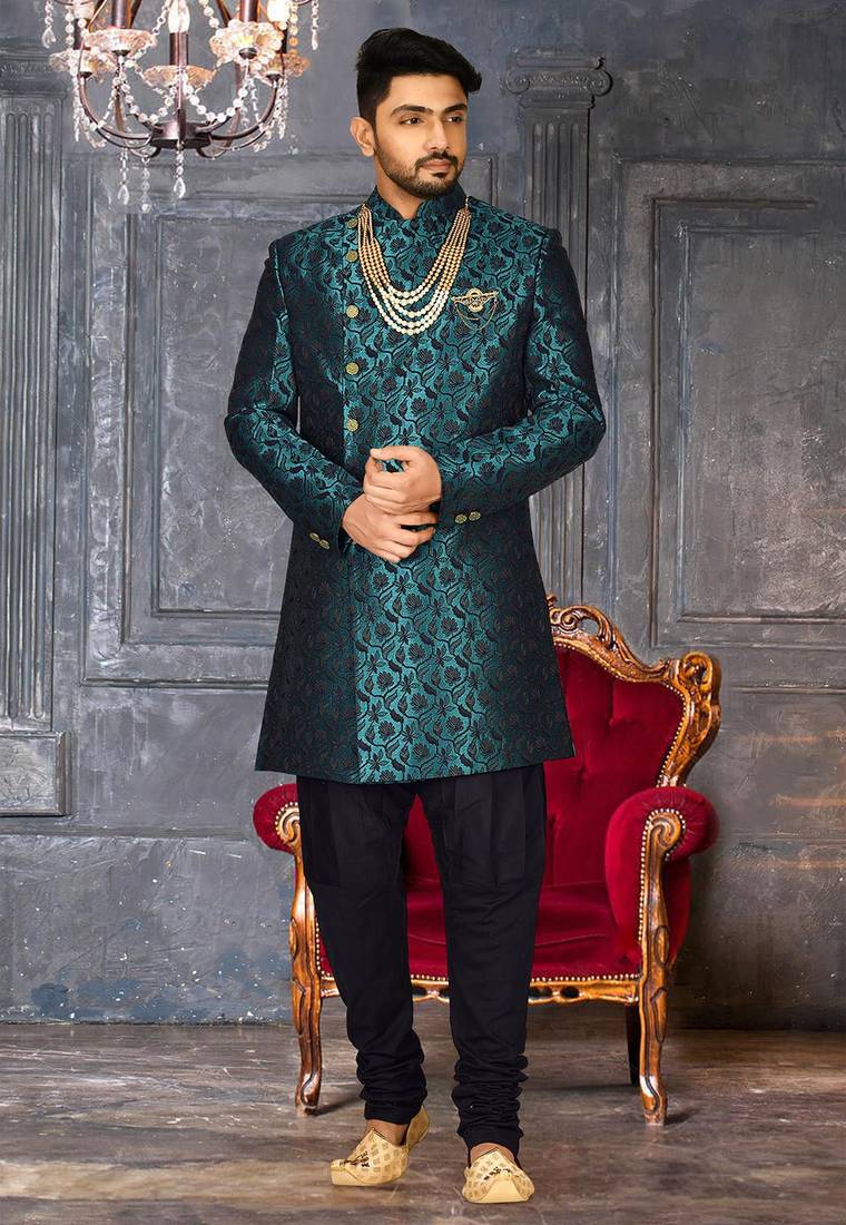 | Product Name | Rama Green Anghrakha Pattern Work Indo Western | |