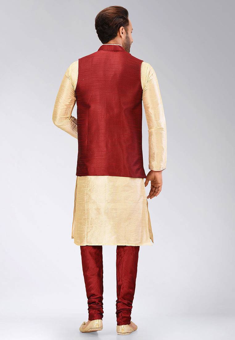 Product Name | Red Dupon Art Silk Kurta, Jacket With Matching Churidar | |