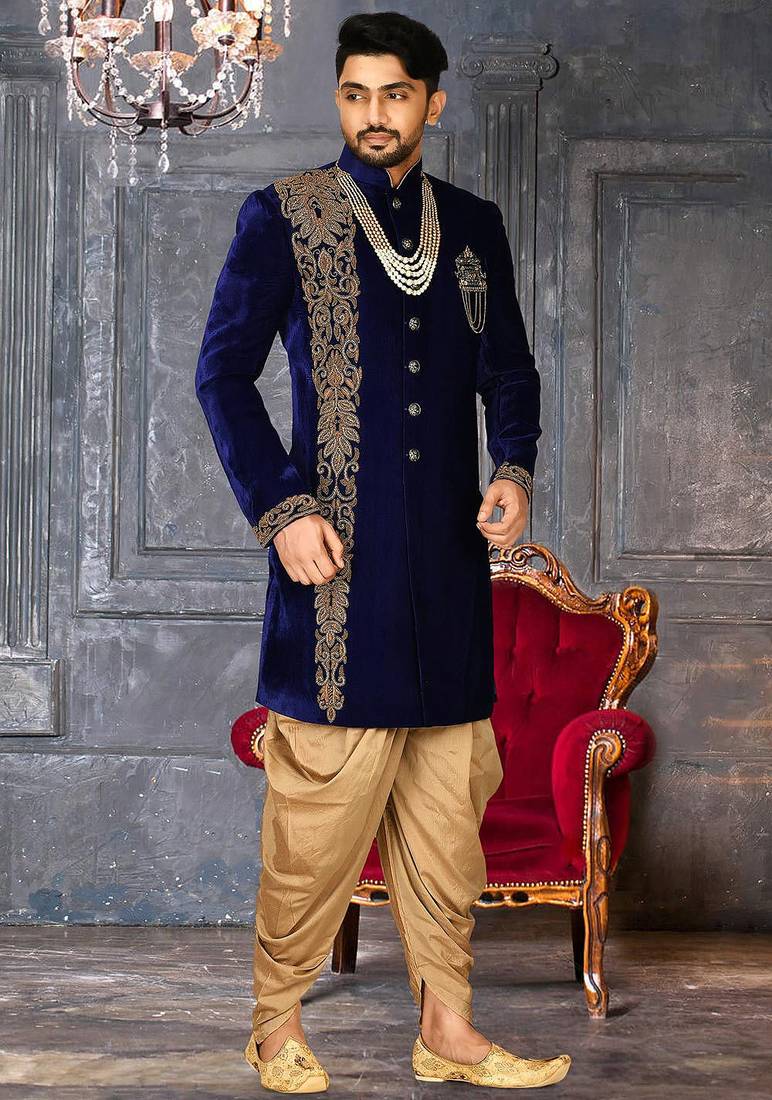 | Product Name | Royal Blue Straight Pattern Work With Hand Work In Front Indo Western | |