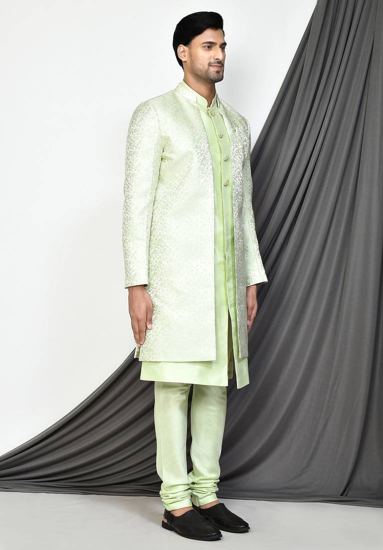| Product Name | Sea Green Front Open Pattern Design With Detached Inside Sleeveless Jacket Indo Western | |