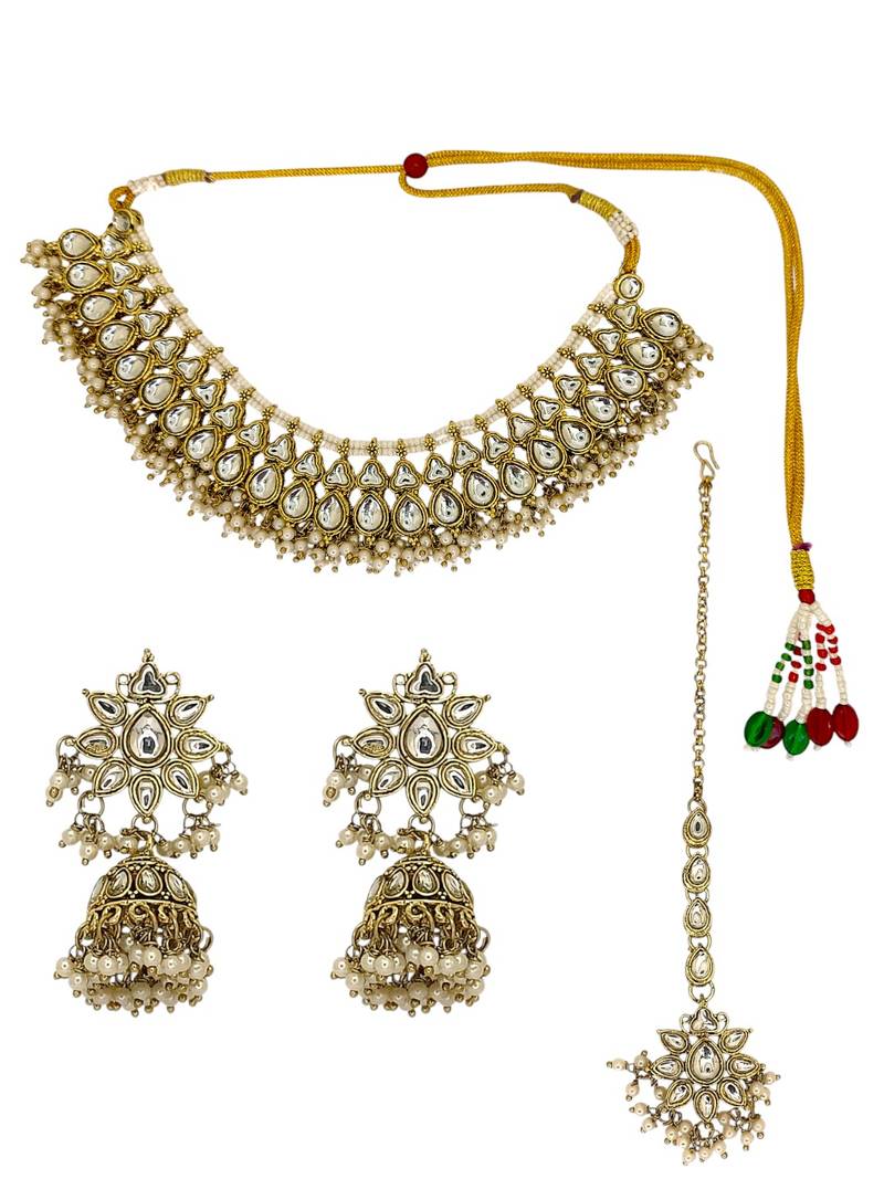 | Product Name | Antique Gold Plated Kundan Patwa Necklace Maang Tikka Set | |