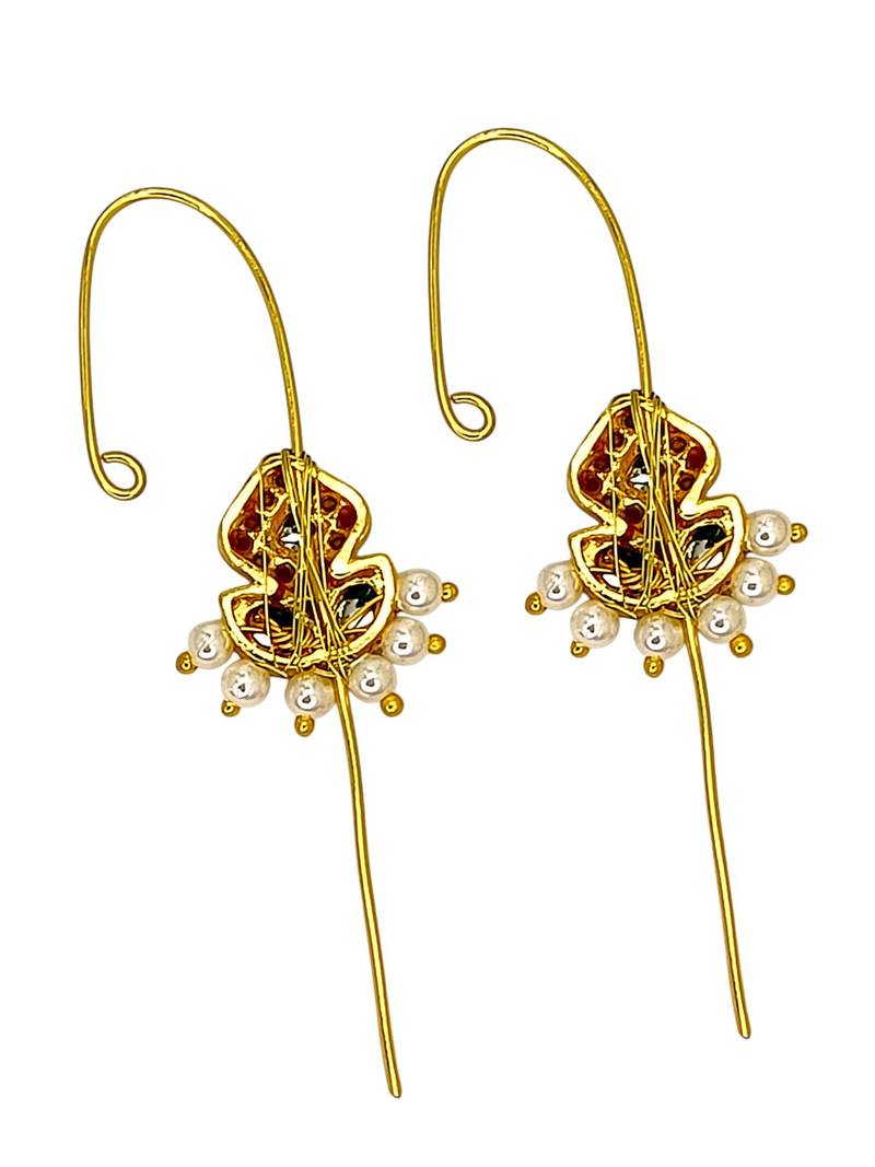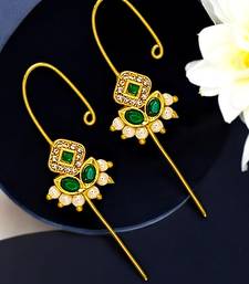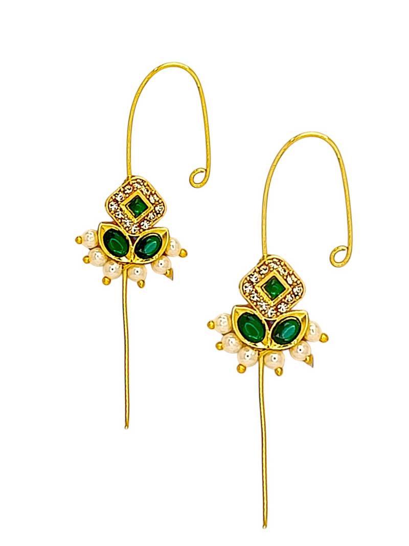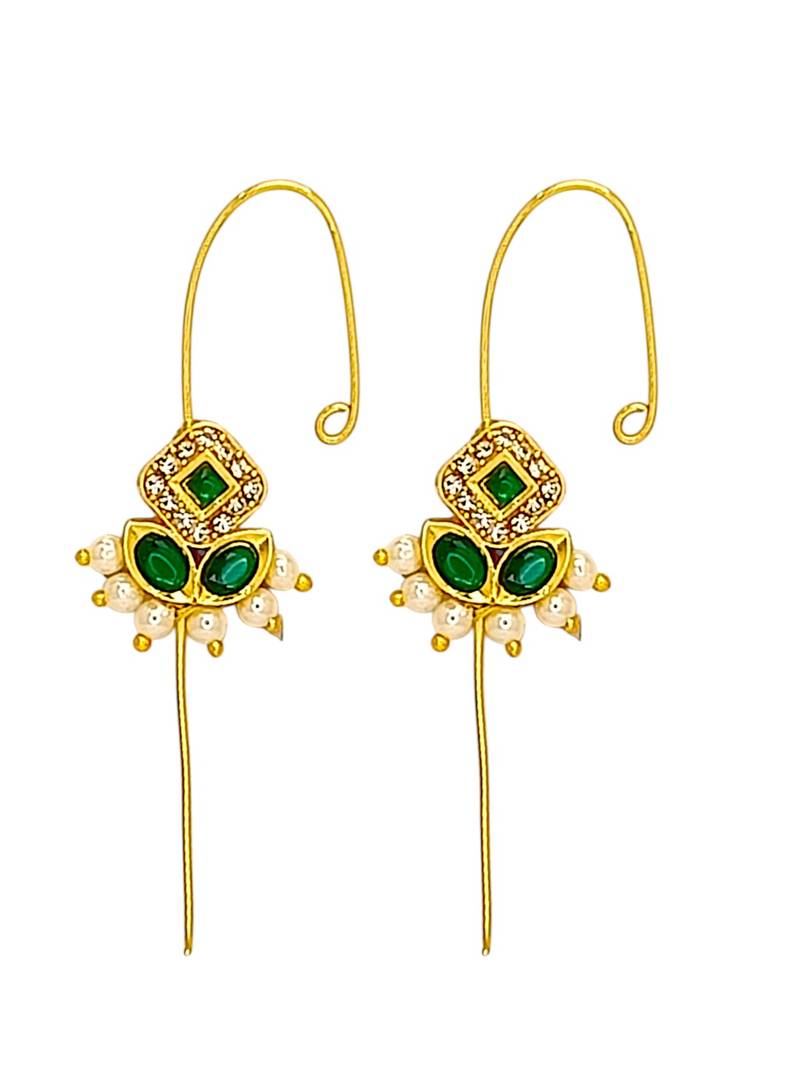| Product Description | Gold Toned Green Stone, Cubic Zircon And Beads Studded Needle Ear Cuff Earrings. Secured With Insert Closure