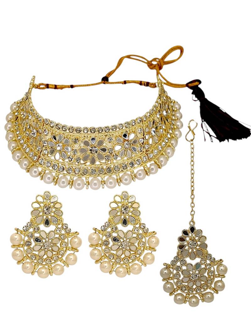 Product Name Gold Plated Mirror Choker Necklace Maang Tikka Set