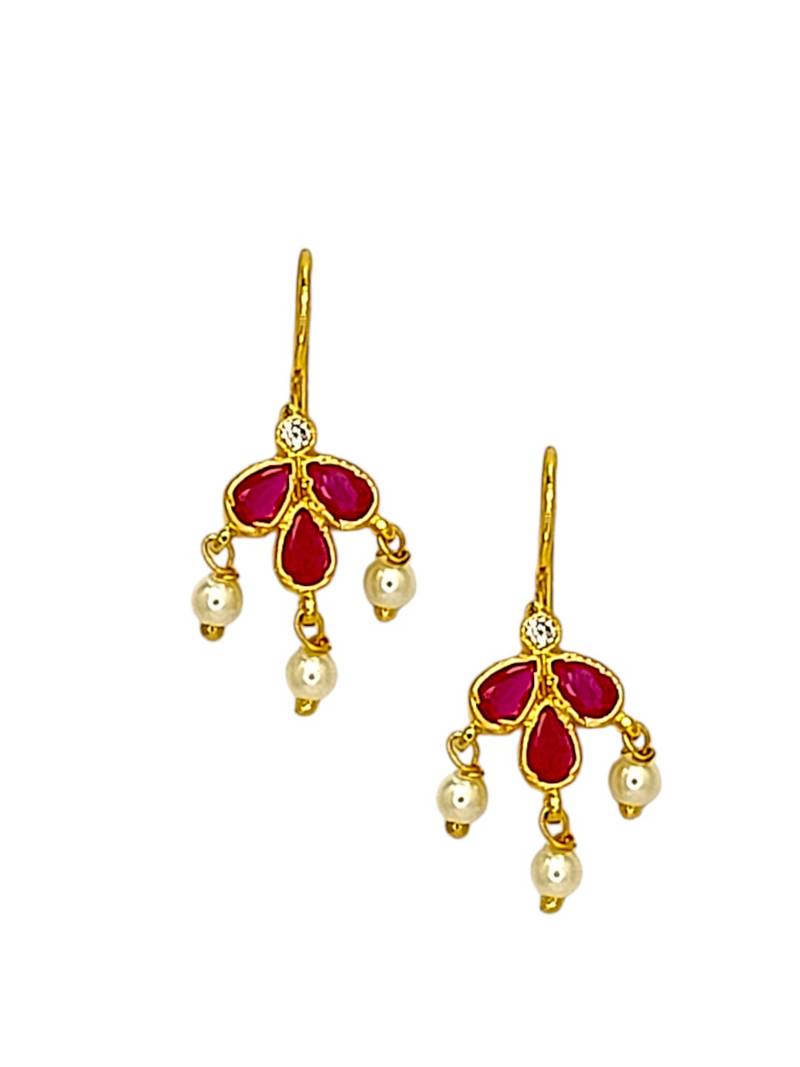 Gold plated pink stone maharashtrian bugadi earrings