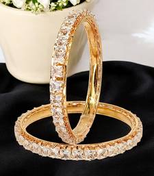 | Product Description | Set Of 2 Gold Plated Square Shape Princess Cut American Diamond Bangles. Secured With Slip On Closure