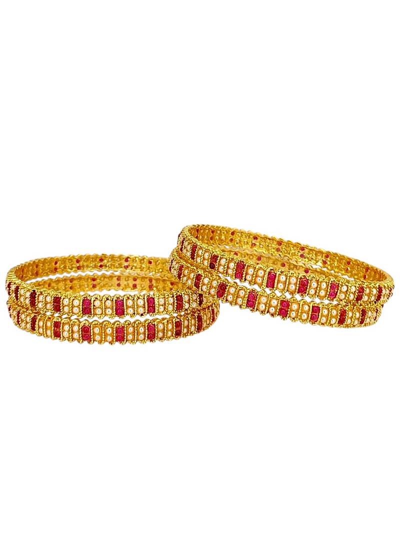 | Product Name | Gold Plated Set Of 4 Traditional Red Stone Moti Bangles | |
