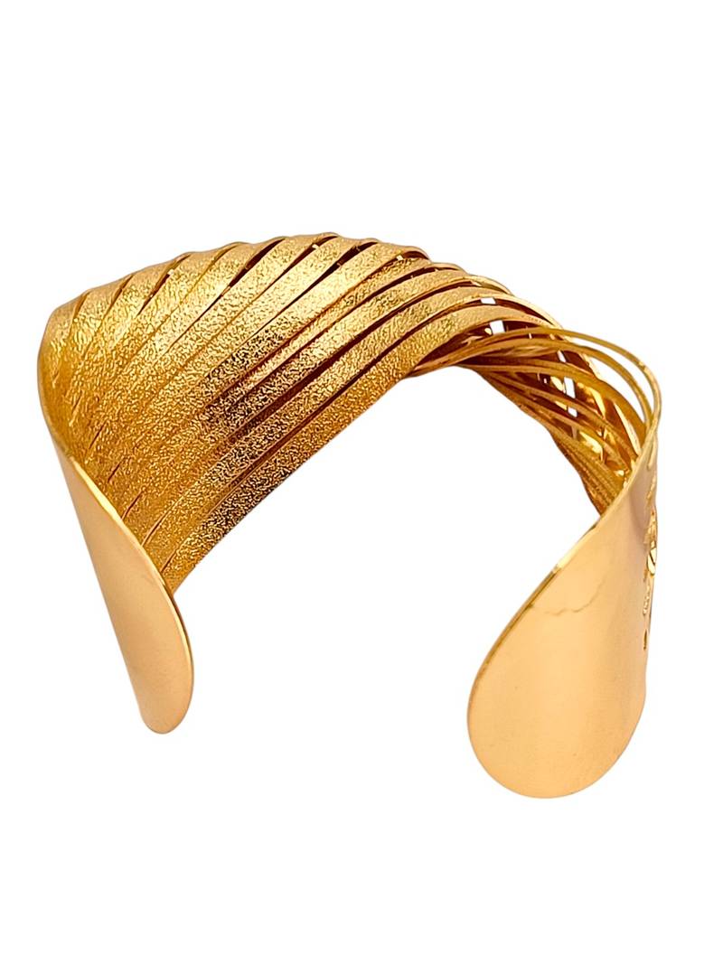 | Product Description | This Gold Toned Spiral Twist Cuff Bracelet Features A Sleek, Sculpted Design That Wraps Gracefully Around The Wrist, Offering A Modern Yet Elegant Look; Crafted With A Polished Finish For Added Shine, It Slides On Effortlessly With A Slip On Closure And Is Fully Adjustable To Comfortably Fit A Range Of Wrist Sizes, Making It A Versatile And Stylish Accessory For Everyday Wear Or Special Occasions. Diameter: 5.6cm, Width: 4cm |