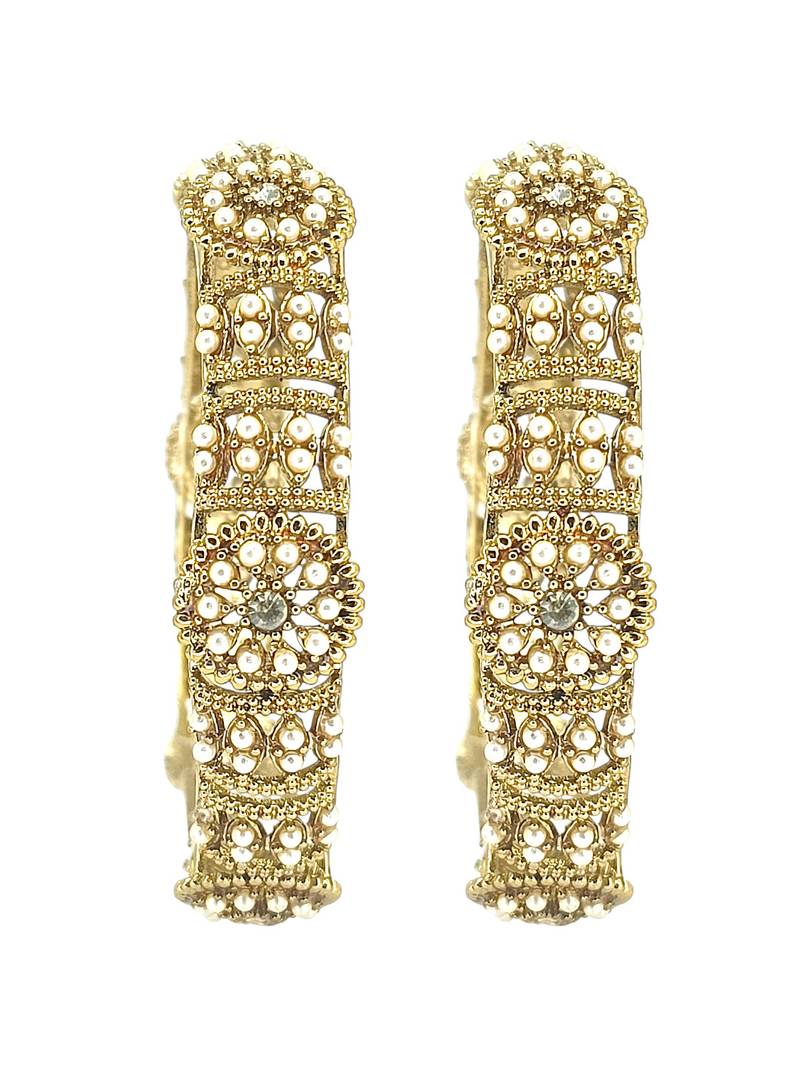 | Product Description | Set Of 2 Antique Gold Plated Intricate Filigree Work Bangle Set Studded With White Beads. Secured With Slip On Closure.