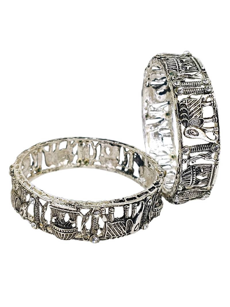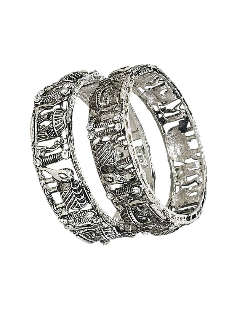 | Product Name | Set Of 2 Silver Oxidised Cz Elephant & Bride Doli Motif Bangles | |