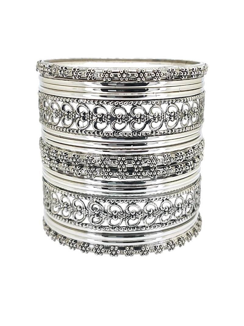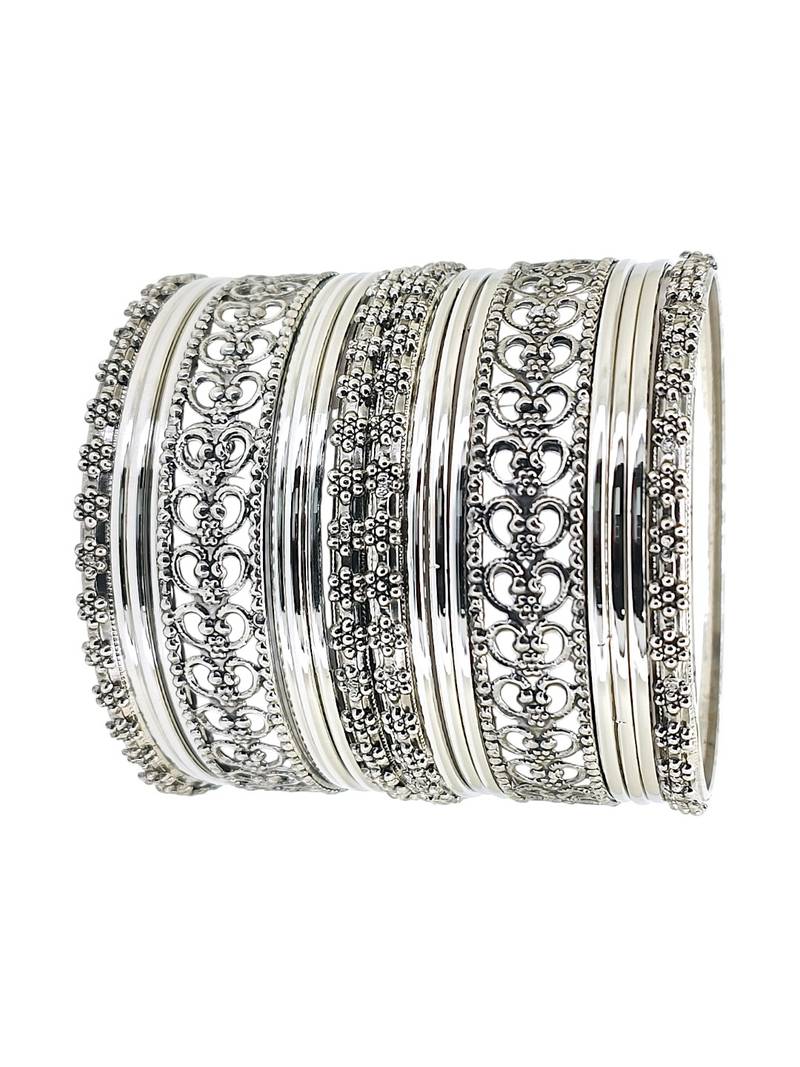 | Product Name | Silver Oxidised Set Of 18 Cutwork Pattern Bangle Set | |