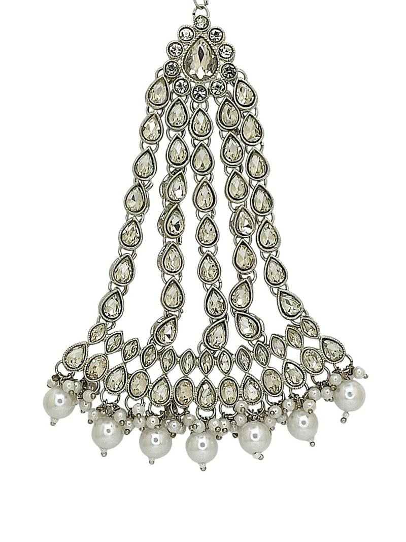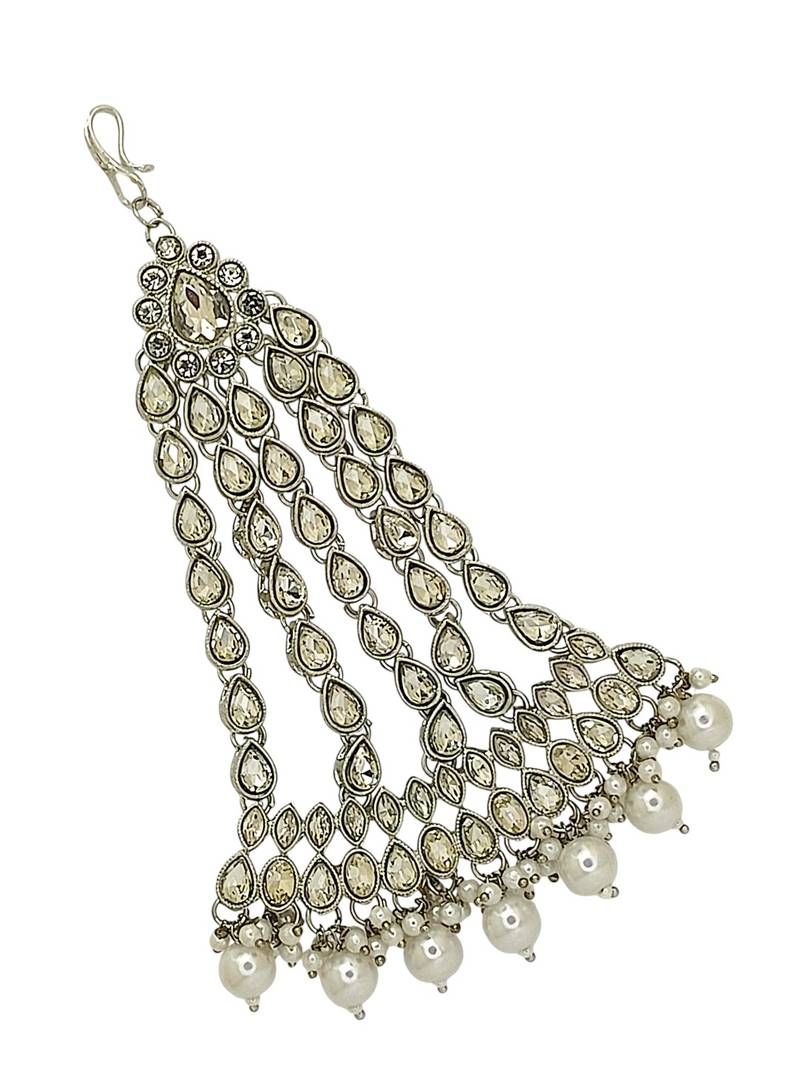 Silver plated crystal stone white jhumar passa head jewellery