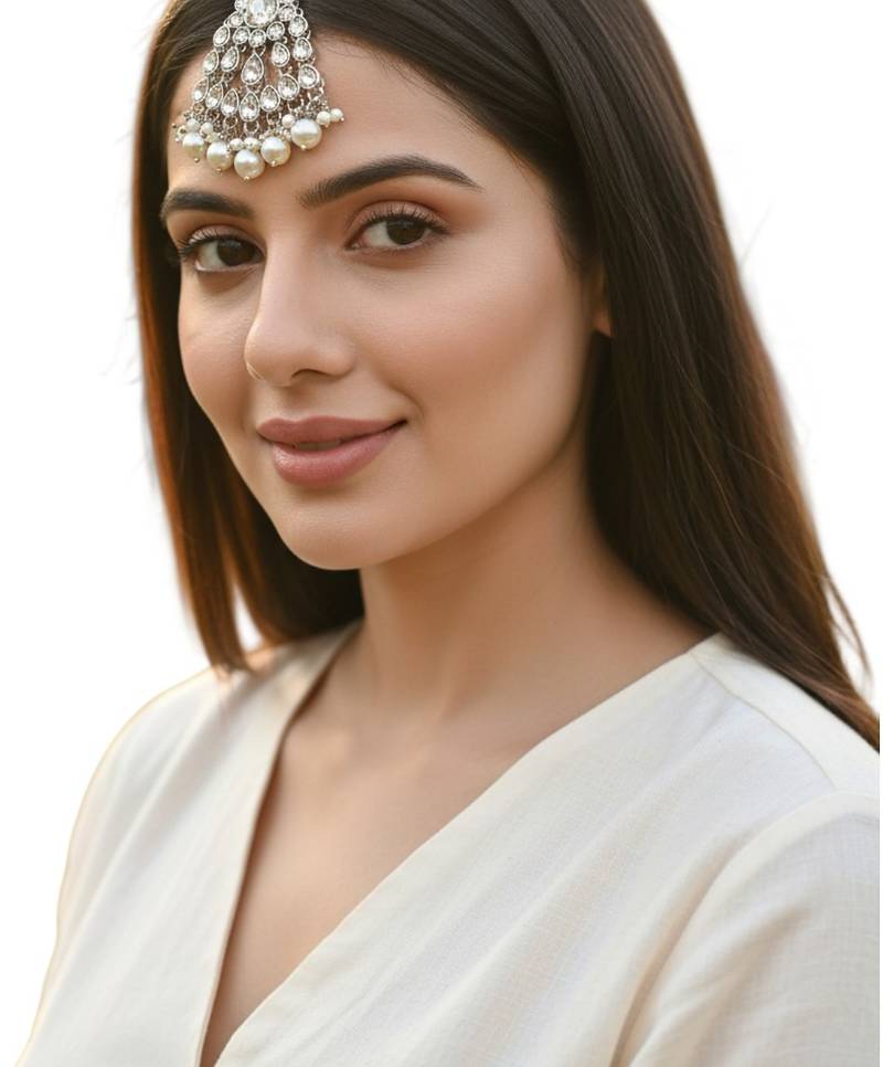 | Product Name | Silver Plated Crystal Stone White Jhumar Passa Head Jewellery | |