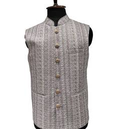 | Product Description | This Item Is A Men's Ethnic Nehru Jacket Designed With An Elegant Touch Of Traditional And Contemporary Style. The Jacket Showcases A Rich, Intricately Woven Fabric With A Vertical Striped Pattern In Muted Shades Of Lavender, Grey, And White, Accented By Delicate Floral Motifs Throughout The Surface For Added Texture And Visual Interest.