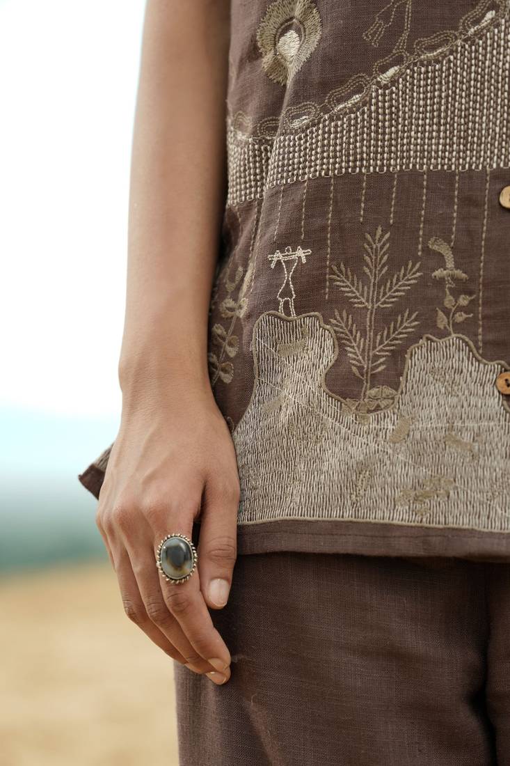 Brown embroidered viscose co-ord set