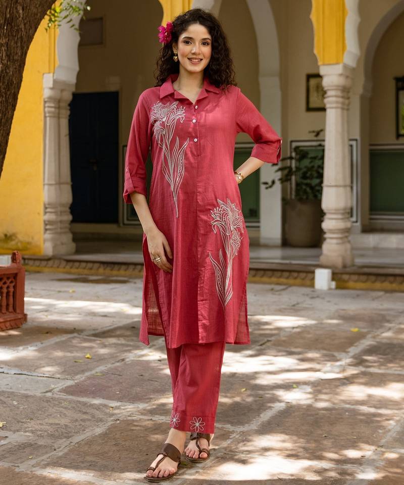 | Product Description | This Striking Red Kurta Set Features Intricate Grey Embroidery On Vibrant Cotton Fabric. Designed With A Flattering Silhouette Suitable For All Body Types, The Set Includes A Comfortable Kurta And Matching Bottoms, Crafted From Lightweight And Breathable Materials. The Elegant Grey Threadwork Offers A Refined Contrast Against The Rich Red Base, Making It Perfect For Casual Outings, Festive Occasions, Or Semi Formal Gatherings. The Kurta Set Blends Bold Color With Timeless Style For Versatile Wear. |