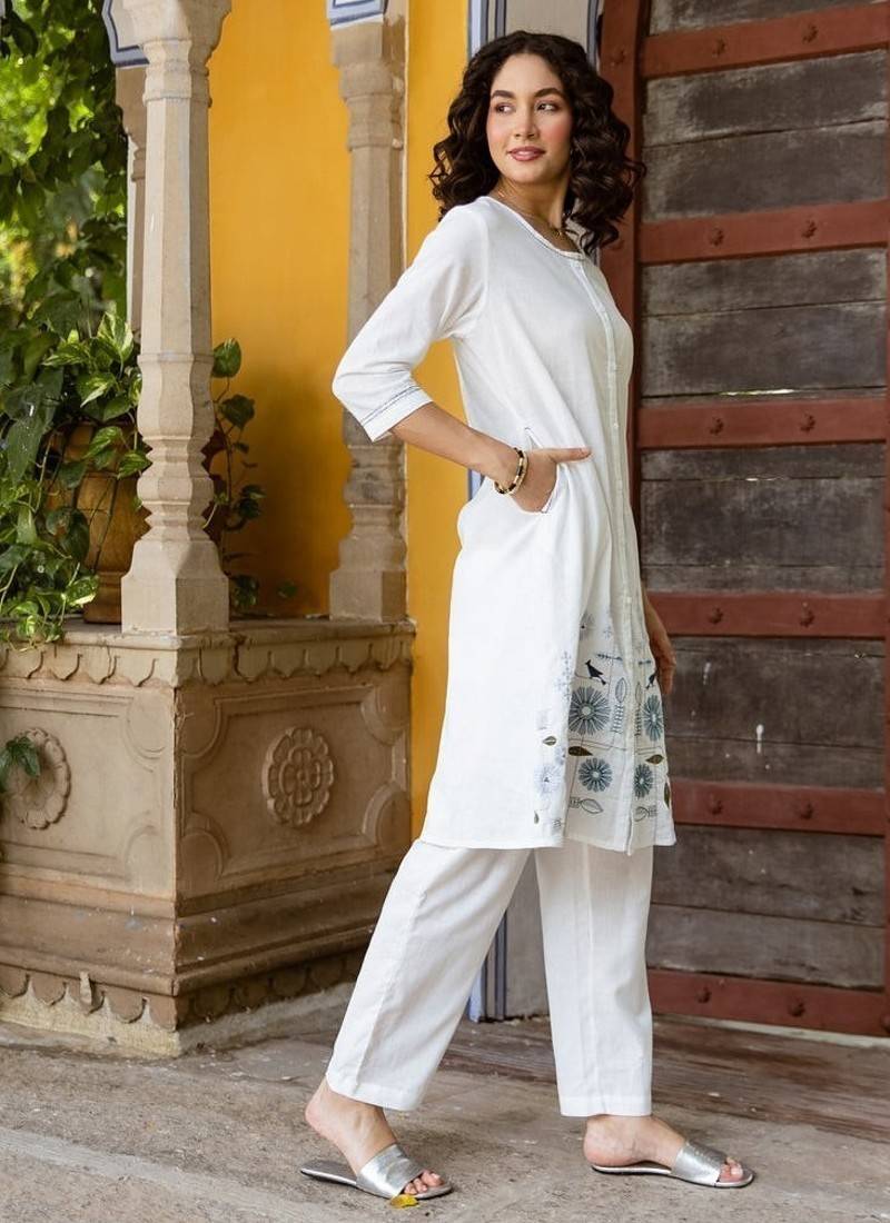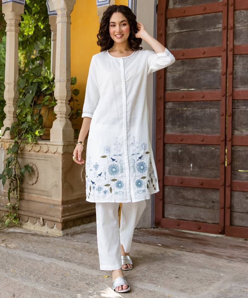 White embroidered cotton 1 kurta bottom