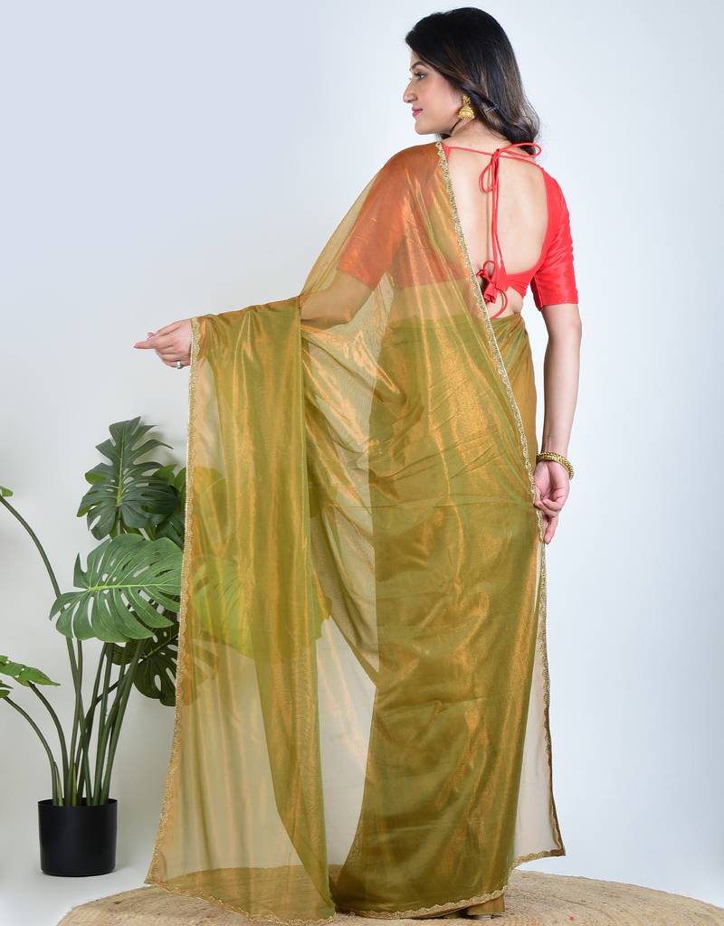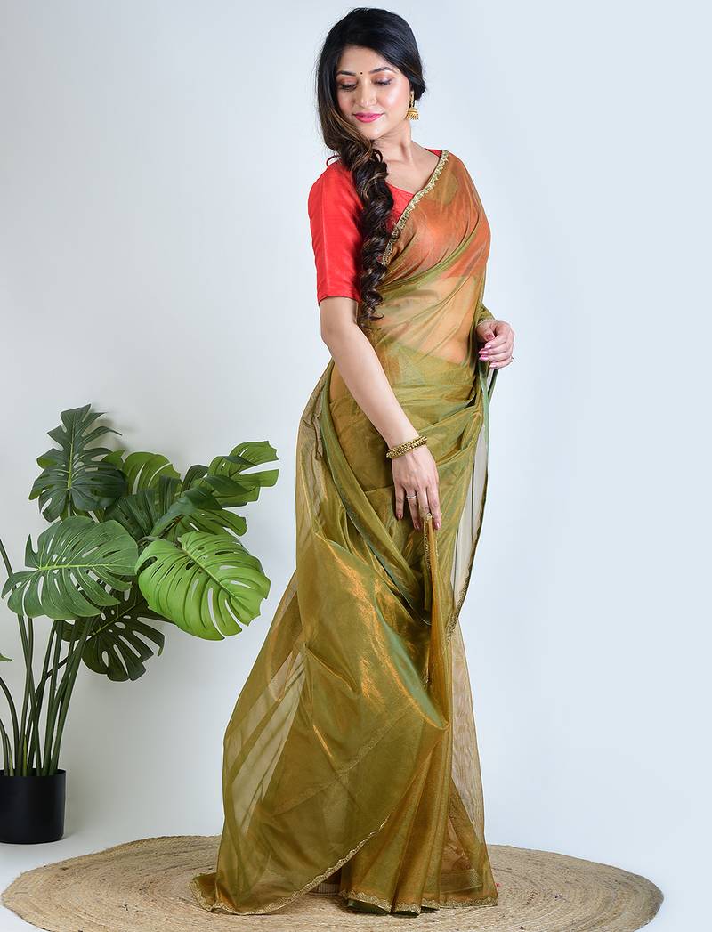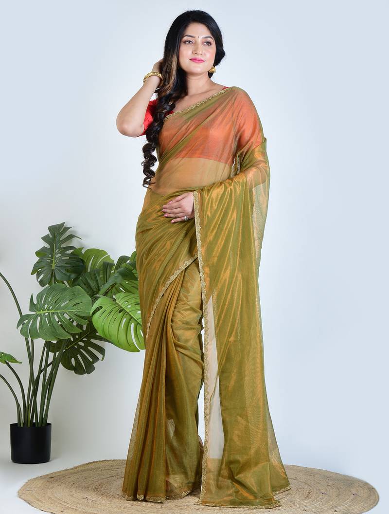 Green plain tissue unstitched blouse piece elegant traditional saree