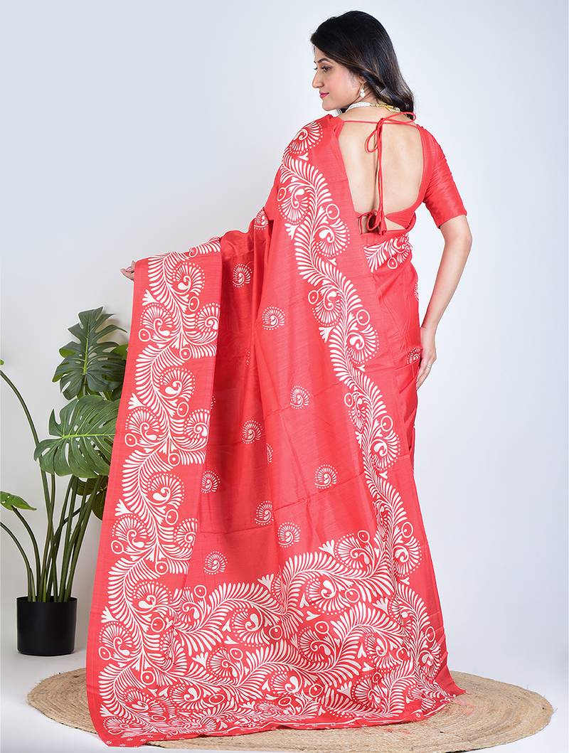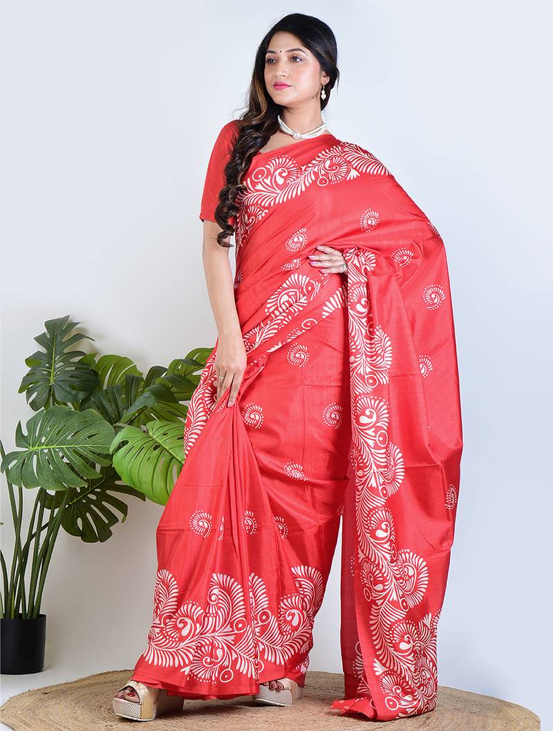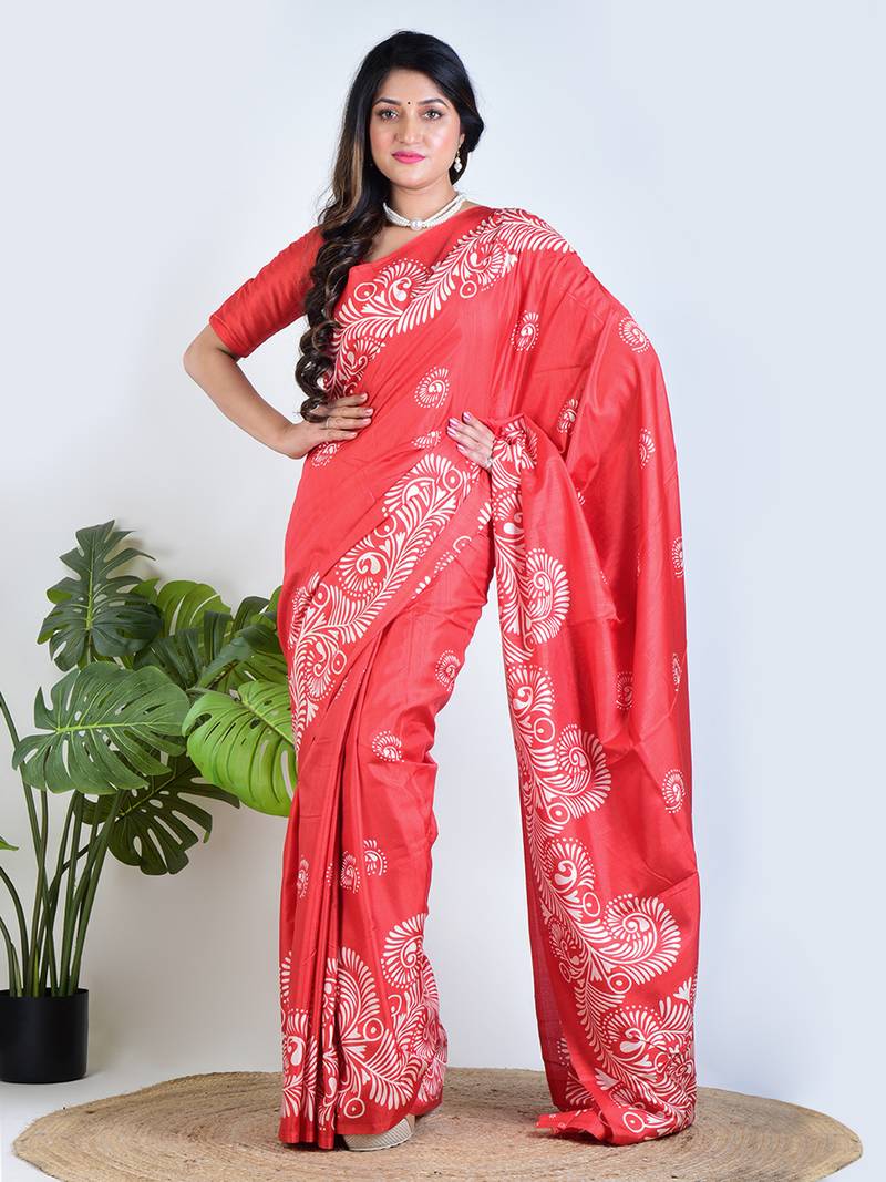 | Product Name | Red Printed Silk Unstitched Blouse Piece Elegant Traditional Saree | |