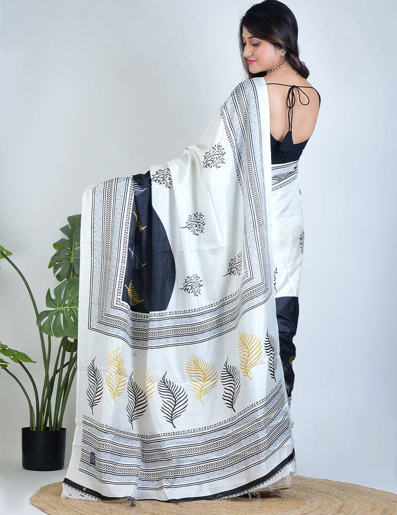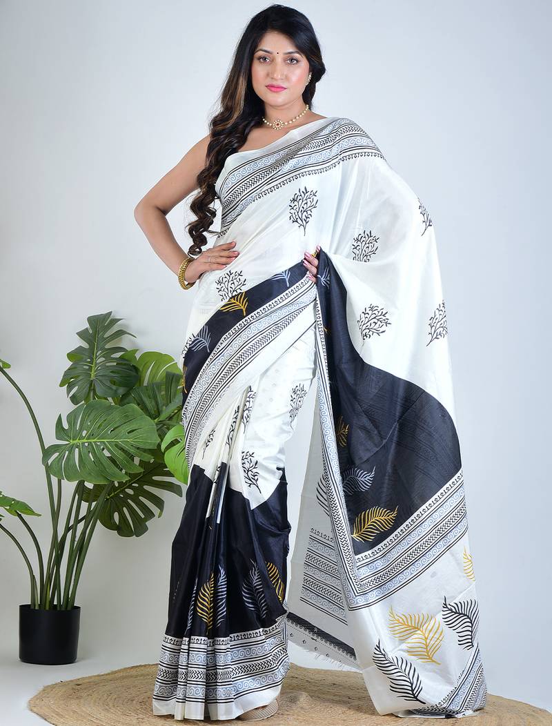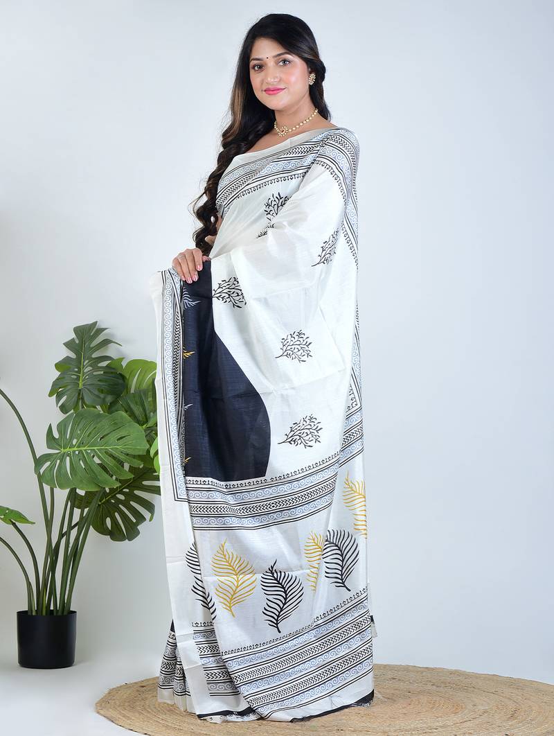 | Product Name | White Printed Silk Unstitched Blouse Piece Elegant Traditional Saree | |