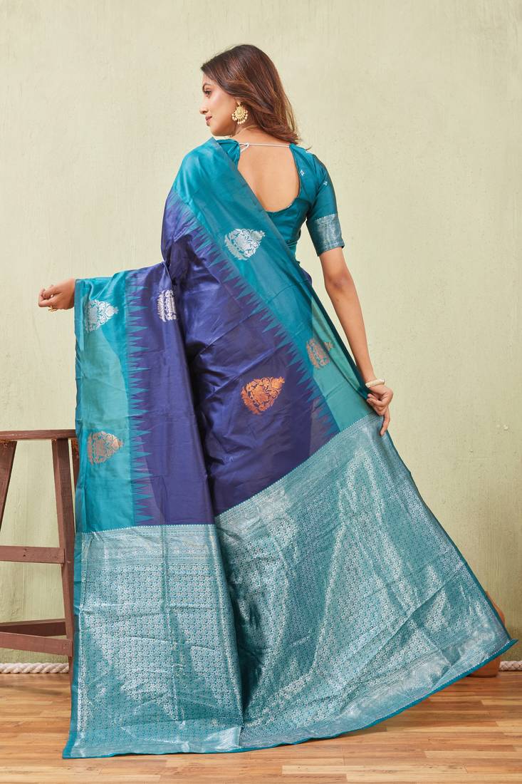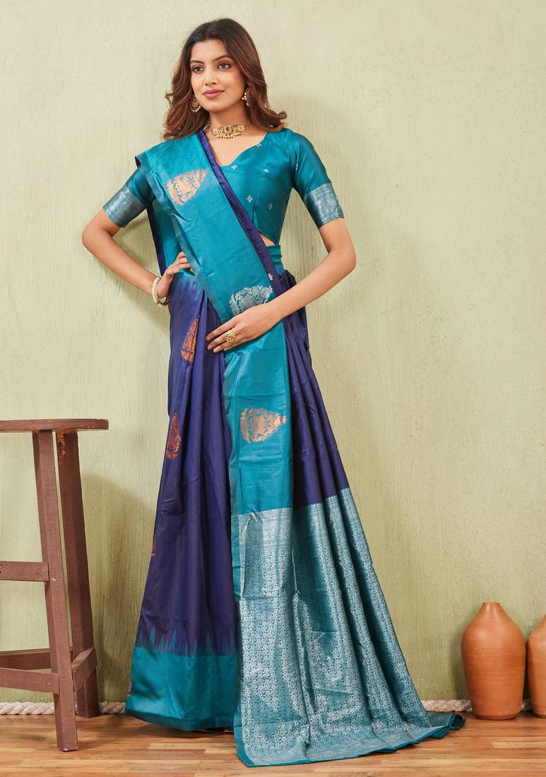 Blue rama art silk jacuard work designer party wear saree with unstitched blouse piece