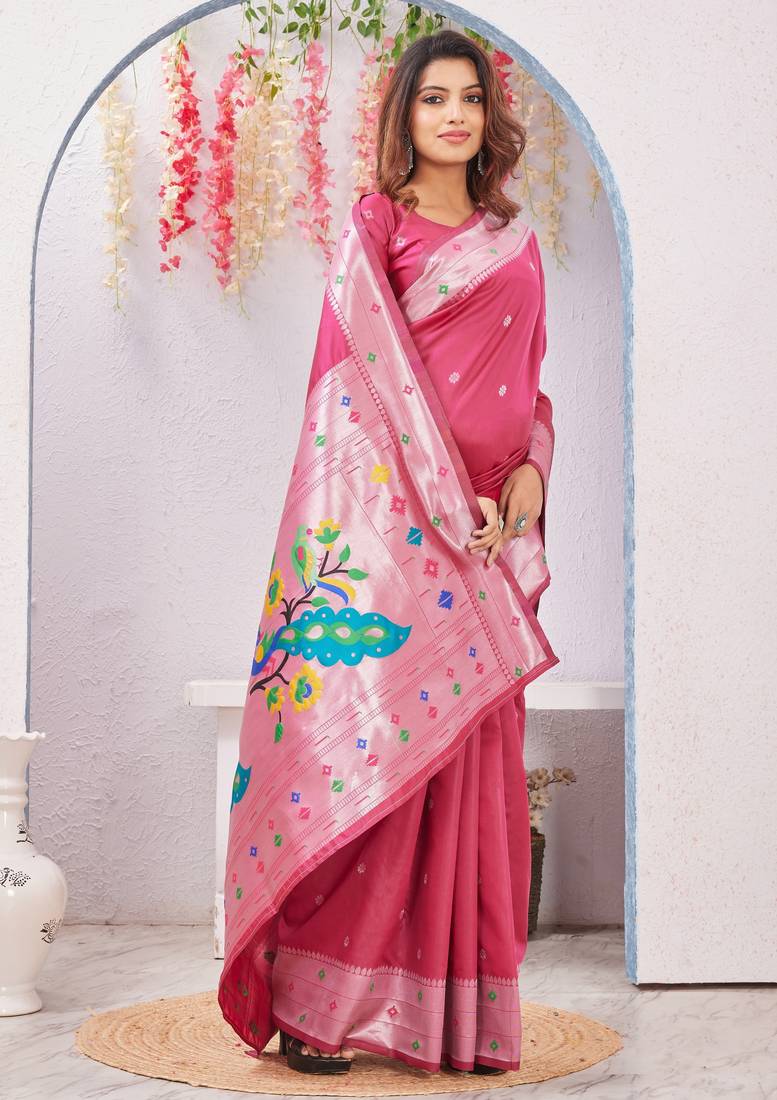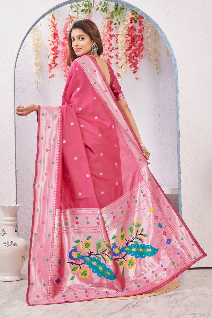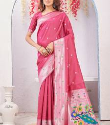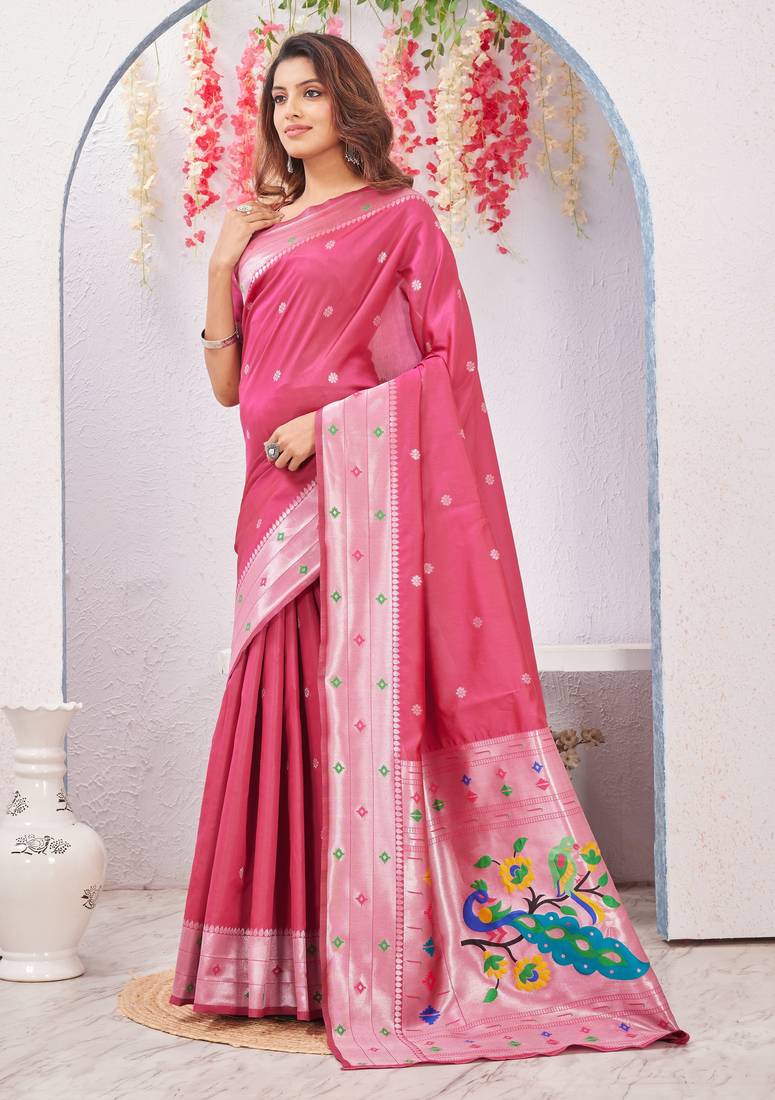 Gajri art silk jacuard work designer party wear saree with unstitched blouse piece