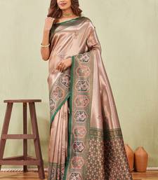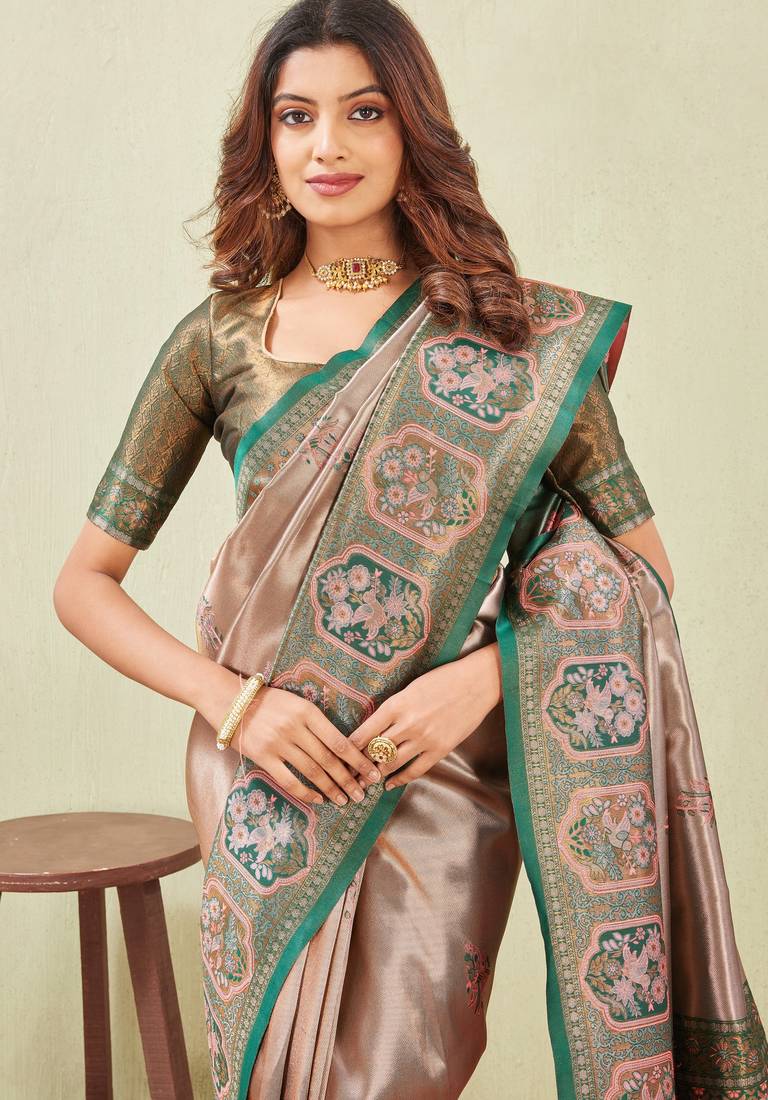 Green gajri art silk jacuard work designer party wear saree with unstitched blouse piece