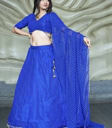 Blue zari and coding lace work with leheriya printed georgette semi stitched lehenga choli