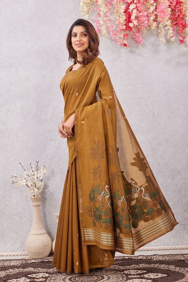 | Product Name | Mustard Lillen Jacuard Work Designer Party Wear Saree With Unstitched Blouse Piece | |