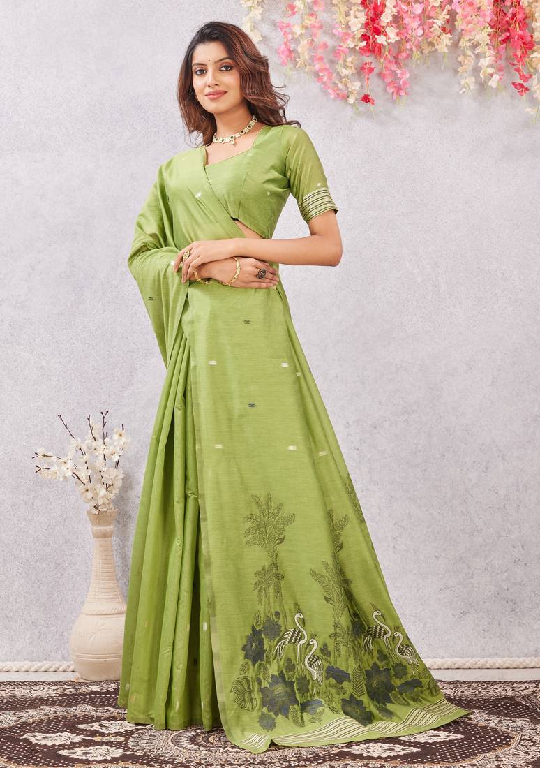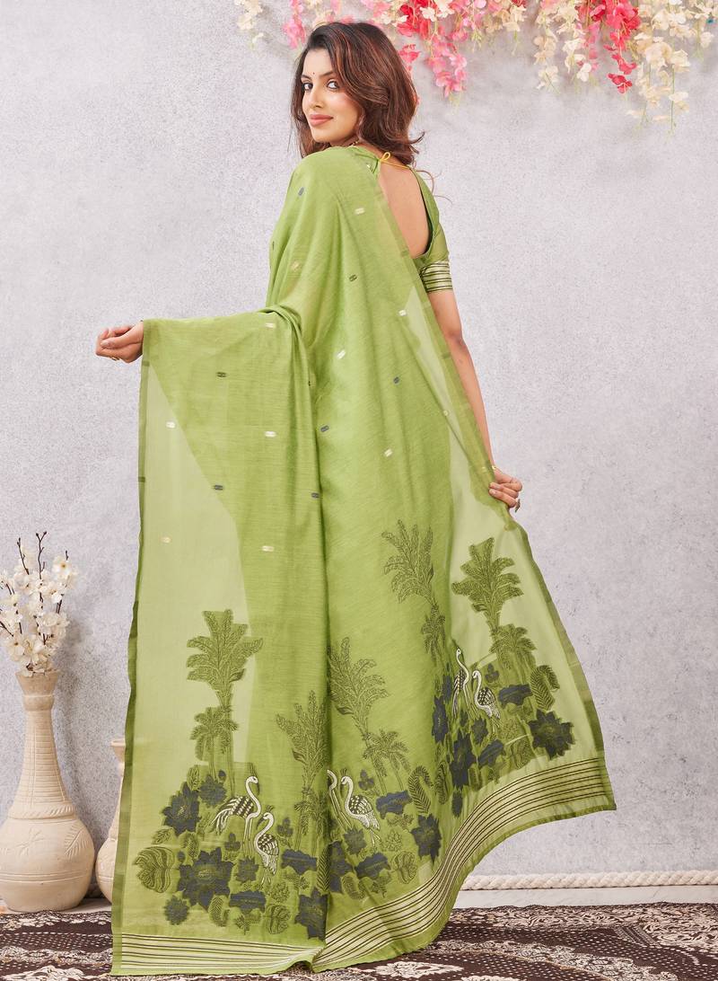 | Product Name | Parrot Green Lillen Jacuard Work Designer Party Wear Saree With Unstitched Blouse Piece | |