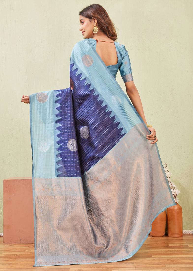 Rama blue art silk jacuard work designer party wear saree with unstitched blouse piece