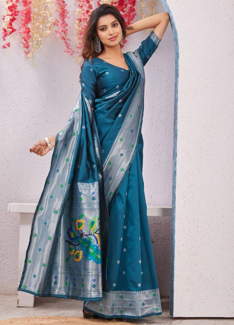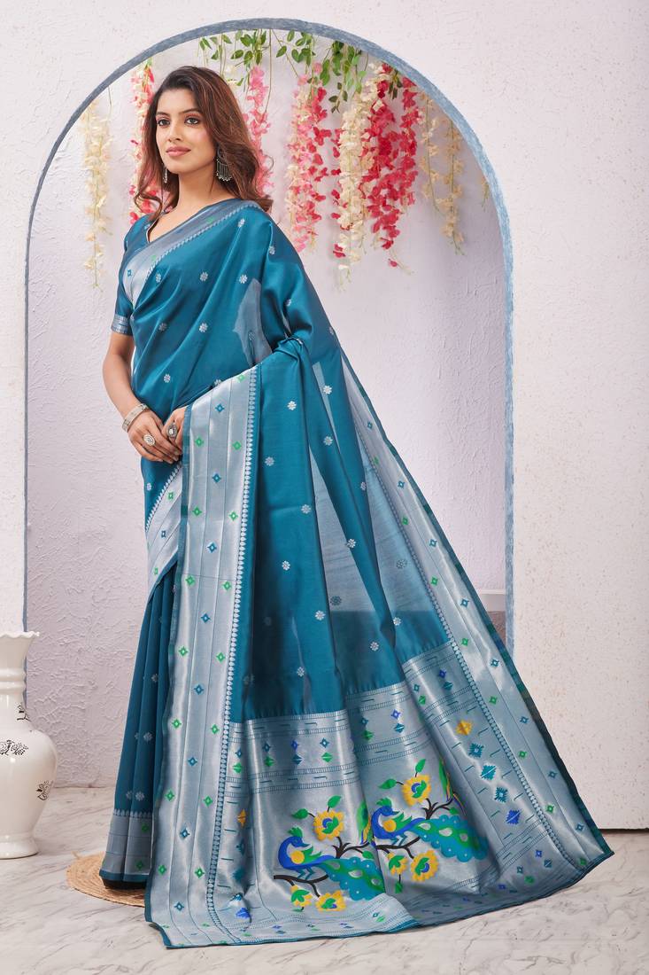 | • | Saree | : | Color- Turquoise / Fabric- Silk Blend |