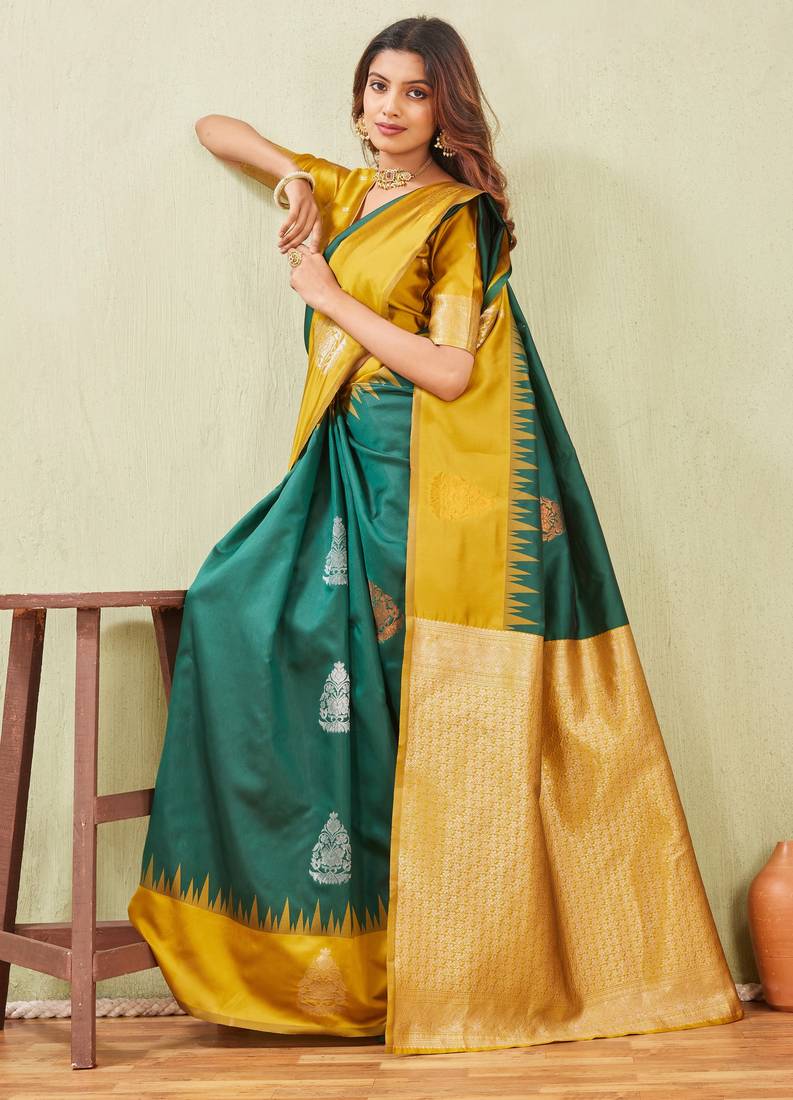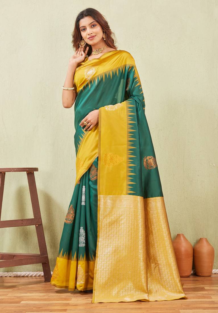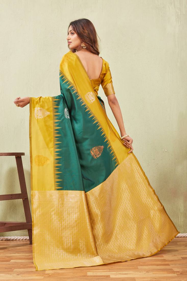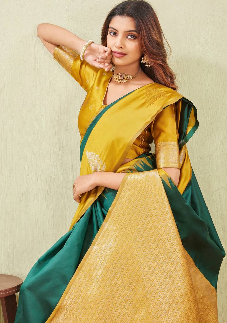 Yellow green art silk jacuard work designer party wear saree with unstitched blouse piece