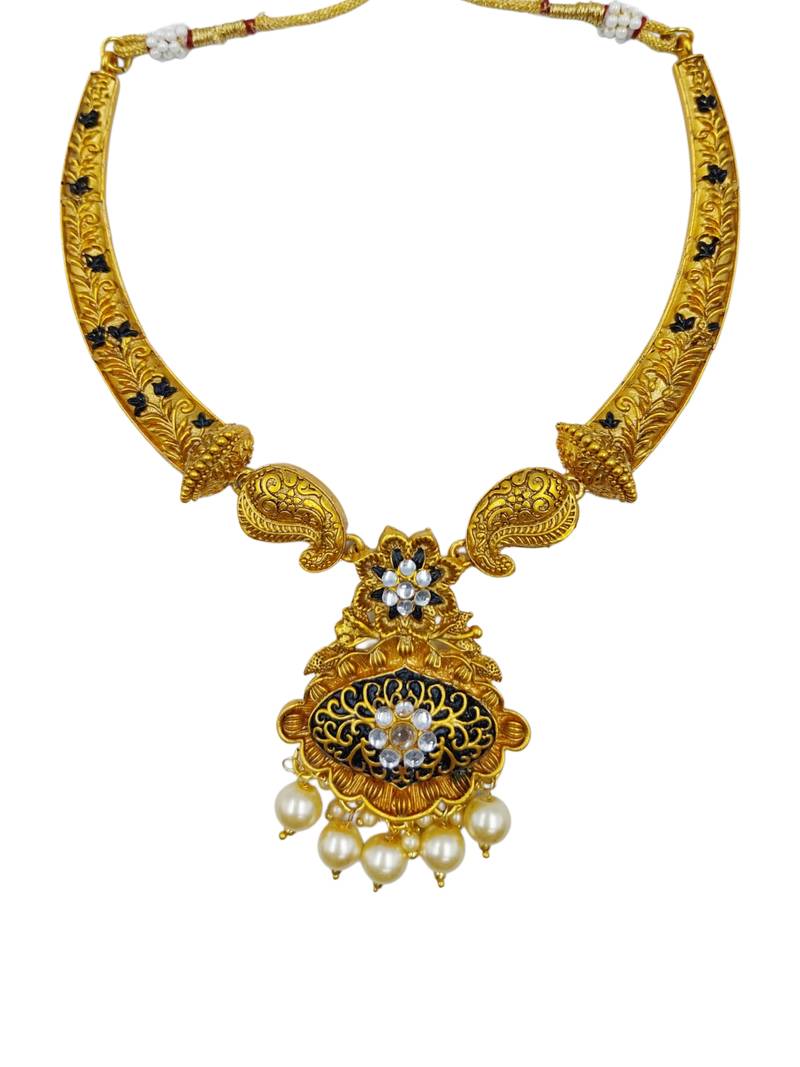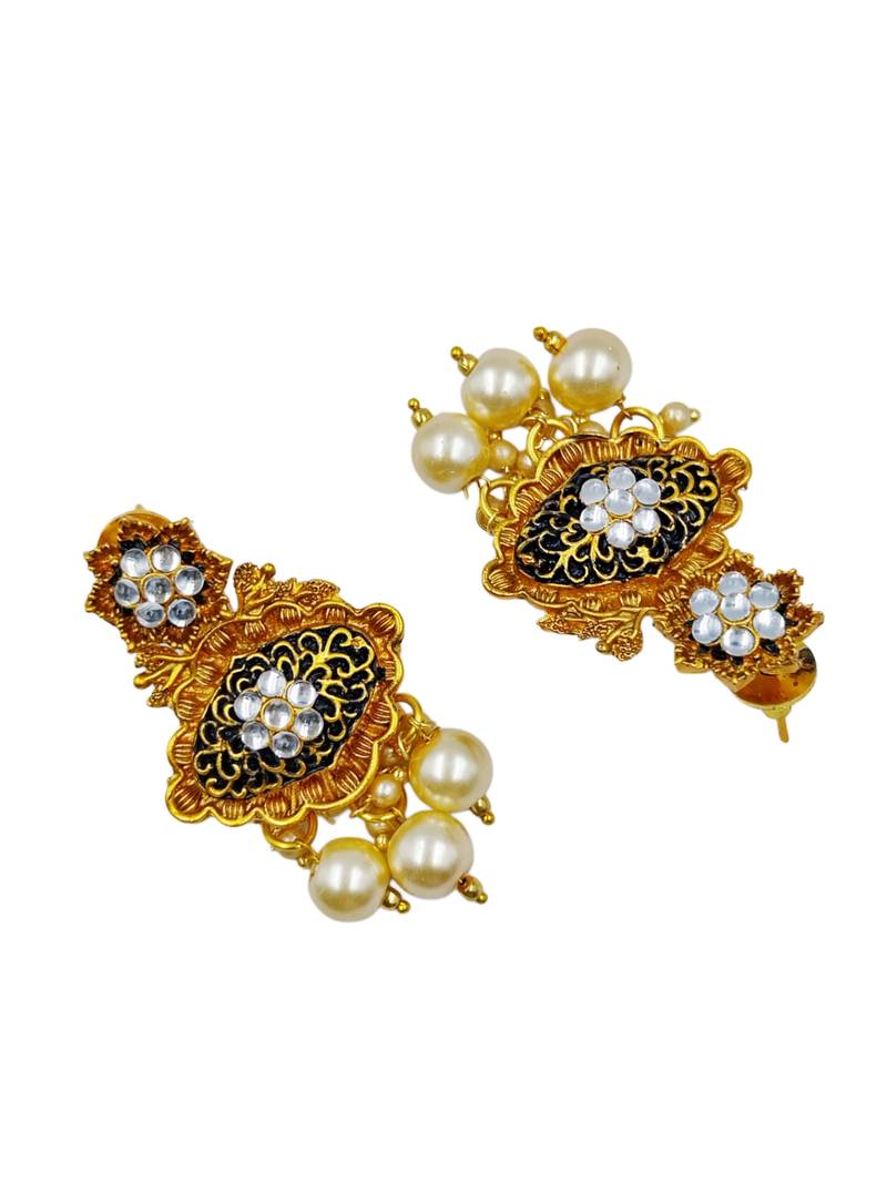 Product Name | Antique Gold Plated Black & Gold Meenakari Necklace Set With Pearl Drops. | |
