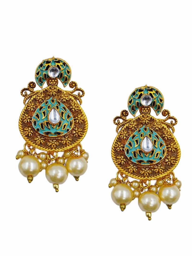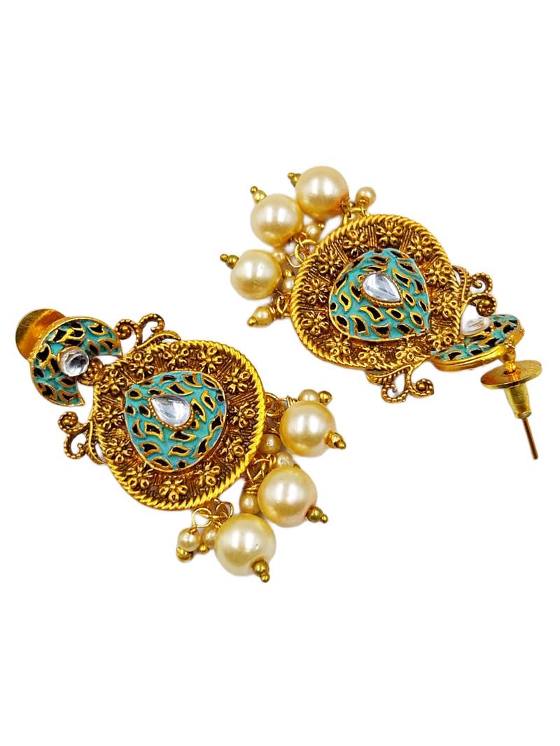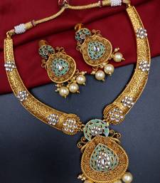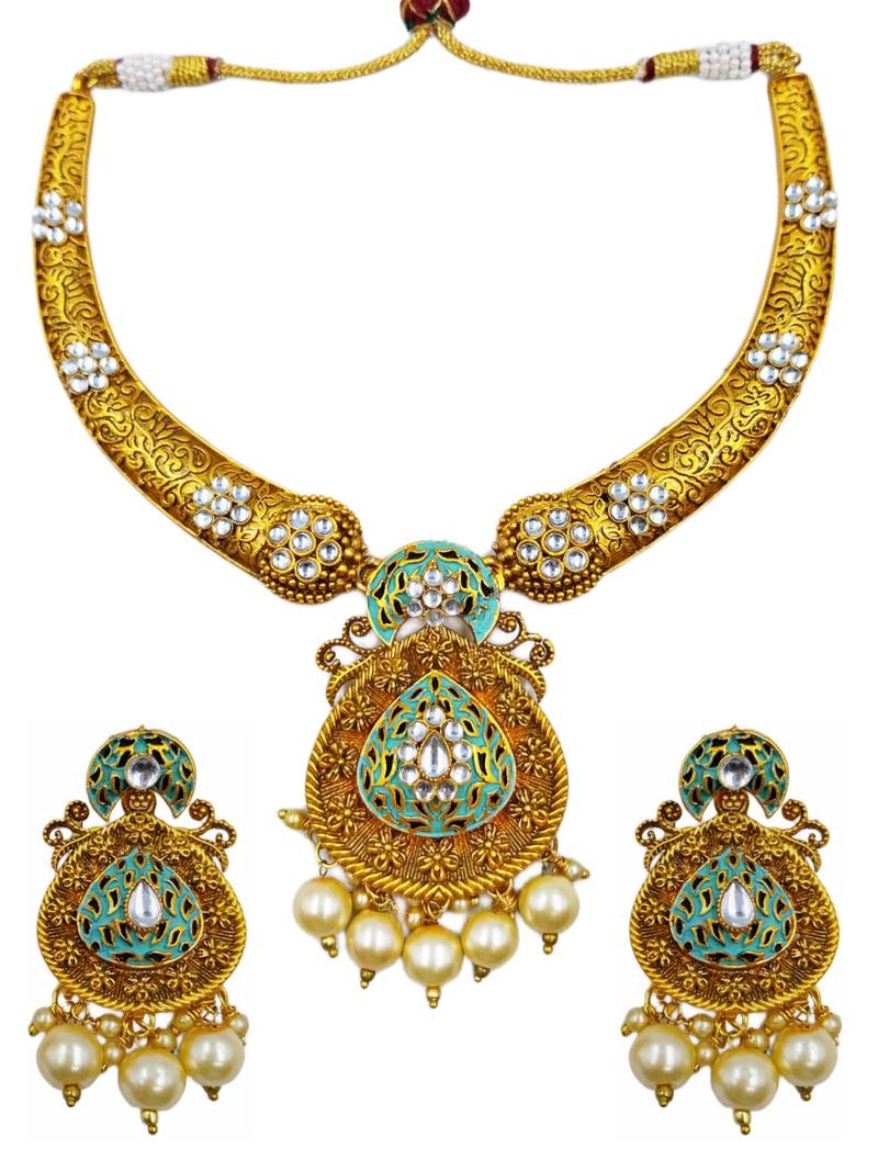 Product Name | Antique Gold Plated Mint & Gold Meenakari Necklace Set With Pearl Drops. | |