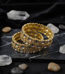 | Product Description | Add A Touch Of Luxury To Your Ethnic Look With These Kundan Studded Gold Plated Designer Bangles. Crafted With Premium Alloy And Finished With A High Polish Gold Coating, These Bangles Offer A Rich Diamond Look Shine. |