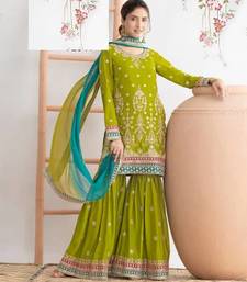 Light green chinon silk semi stitched wedding suits