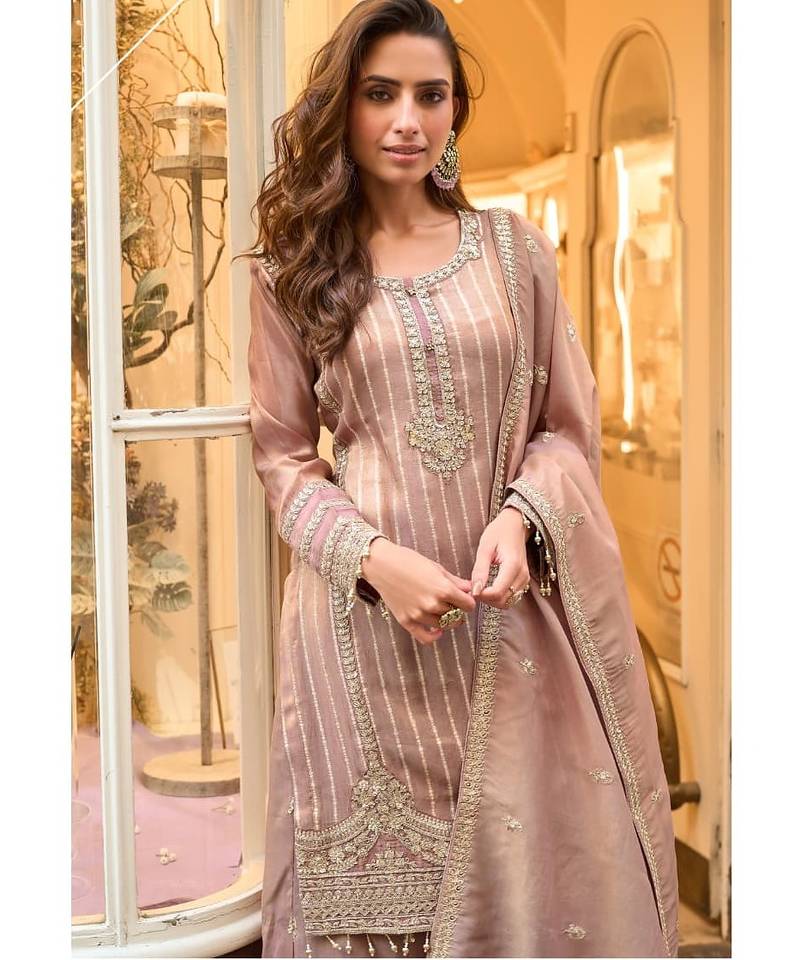 | Product Name | Peach Shimmer Silk Full Stitched Sharara Suits | |