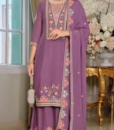 | Product Name | Purple Chinon Silk Semi Stitched Wedding Suits | |